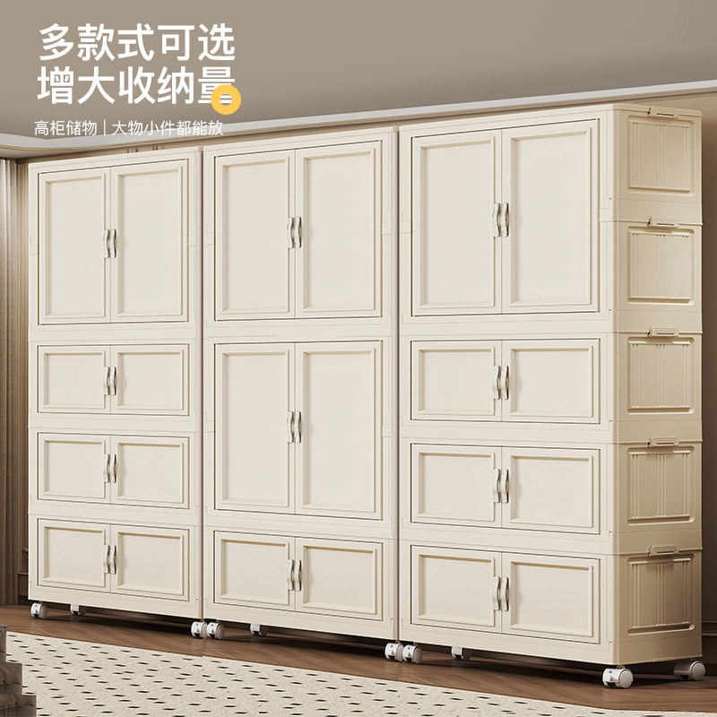 淘折叠储物柜家用客厅免安装收纳柜卧室宝宝衣柜多层婴儿带轮小衣橱
