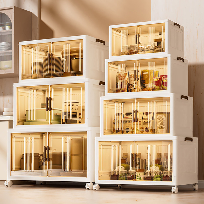 天折叠家用收纳柜子置物柜加厚客厅卧室储物柜带轮免安装塑料零食柜