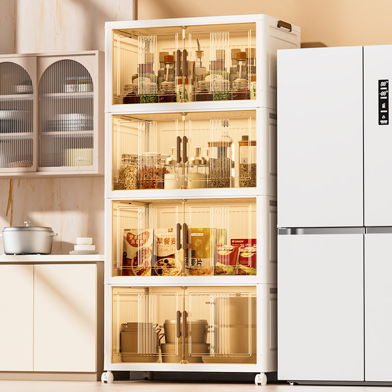 淘免安装折叠收纳柜子客厅零食储物柜厨房夹缝置物架家用塑料收纳箱