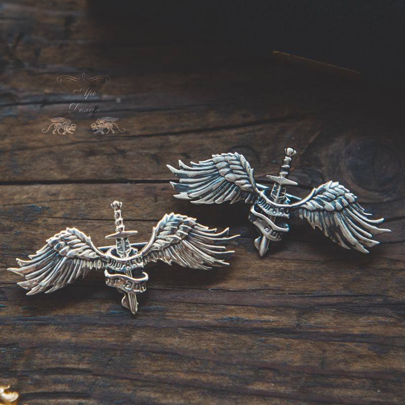 「骑士与天使·剑可拔出」胸针项链,以中世纪骑士精神与天使守护为灵感,融合925银与白铜两种材质精工打造。无面者设计赋予神秘气质,剑刃可真实拔出,象征勇气与信念的觉醒。胸针与项链二合一设计,佩戴方式灵活,既可作为项链吊坠,亦可别于衣襟作胸针,展现独特个性。细节精致,层次分明,骑士坚毅、天使圣洁,共同诠释守护与力量的永恒主题。无论是日常搭配还是特殊场合,皆为彰显品味与态度的点睛之笔,是献给追梦者与守护者的匠心之作。