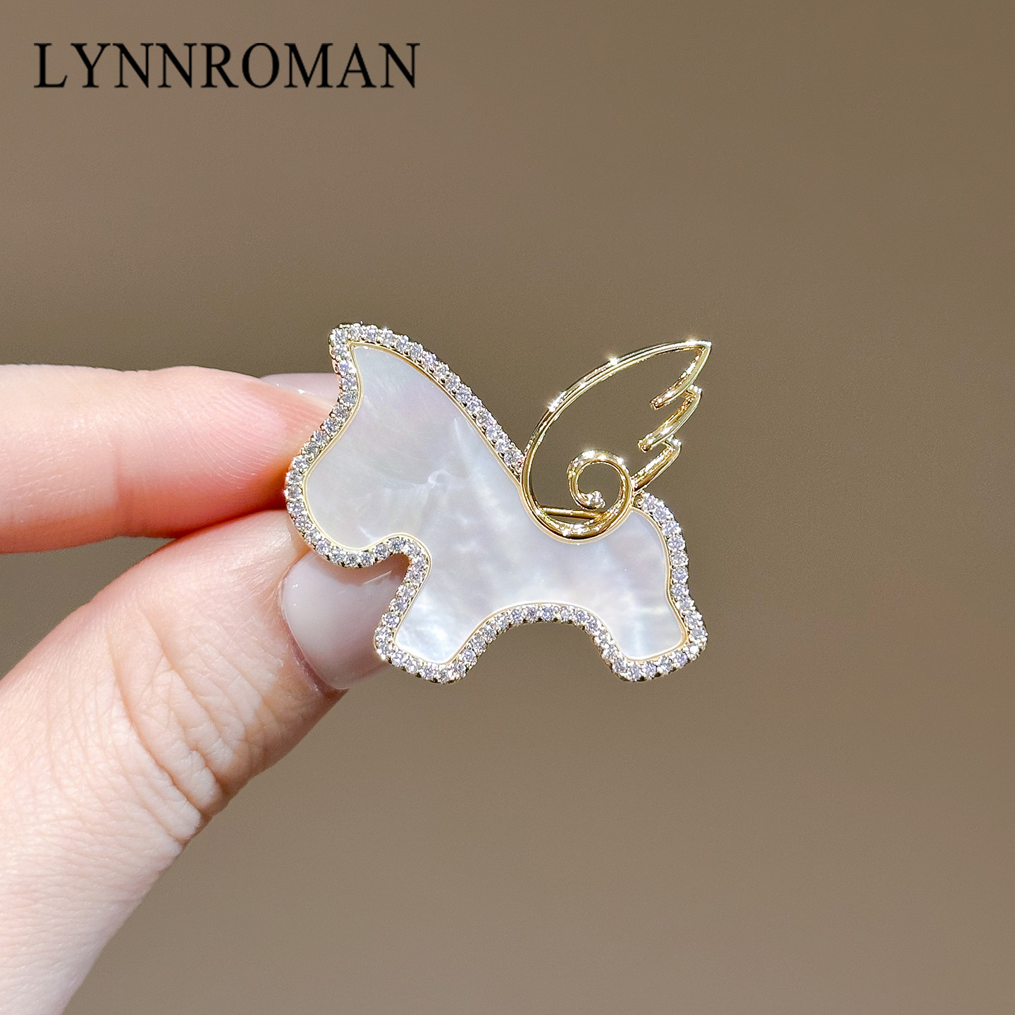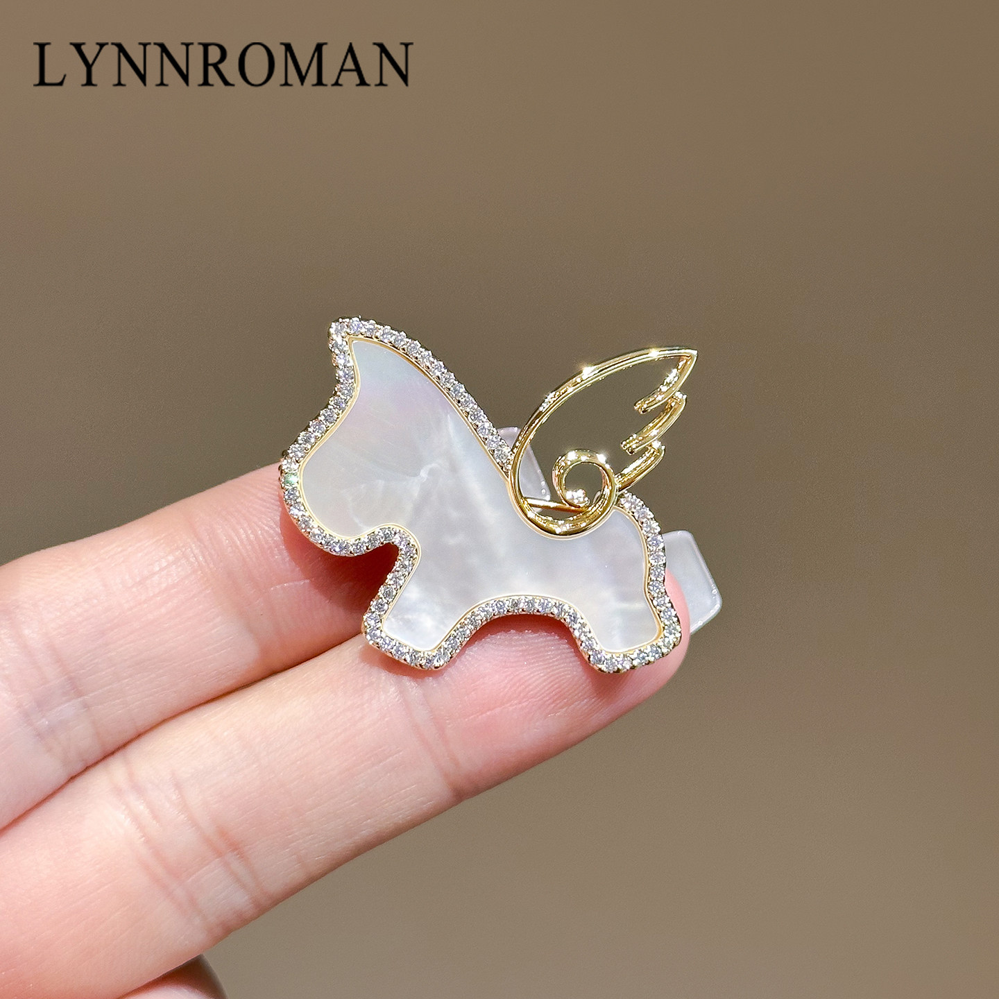 LYNNROMAN小飞马胸针,以精致金色贝母为羽翼,镶嵌璀璨仿钻与温润珍珠,勾勒出梦幻飞马的灵动姿态。整体设计融合古典优雅与现代高级感,细节考究,光泽流转间尽显女性柔美与自信气质。别针采用优质合金材质,佩戴稳固且不易褪色,适合搭配大衣、西装、连衣裙等多种服饰,轻松点缀日常通勤或晚宴造型。无论是自用还是赠礼,这款胸花都是提升整体质感的点睛之笔,展现低调奢华的独特品味,是追求精致生活女性的理想配饰之选。