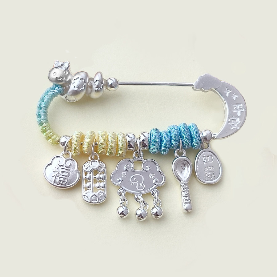 淘宝马蛇新生婴儿宝宝孕妇纯银925别针惊平安足银挂件防外出惊吓胸针