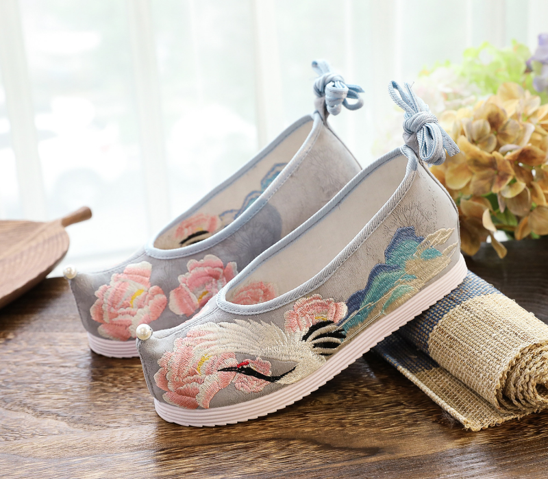 这款女式古装翘头内增高绣花鞋,专为汉服爱好者与古风舞者设计,融合传统弓鞋美学与现代舒适工艺。鞋头精致翘起,饰以手工刺绣花纹,典雅灵动;内里采用隐形增高设计,悄然提升气质,行走更显亭亭玉立。软底材质轻盈柔韧,贴合脚型,适合长时间穿着或舞蹈表演,兼具美观与实用性。平底设计稳固安全,搭配汉服、襦裙或国风造型皆宜,无论是日常出行、节庆典礼还是舞台演出,皆能展现东方古典韵味。精工细作,舒适耐穿,是演绎古风之美的理想之选。