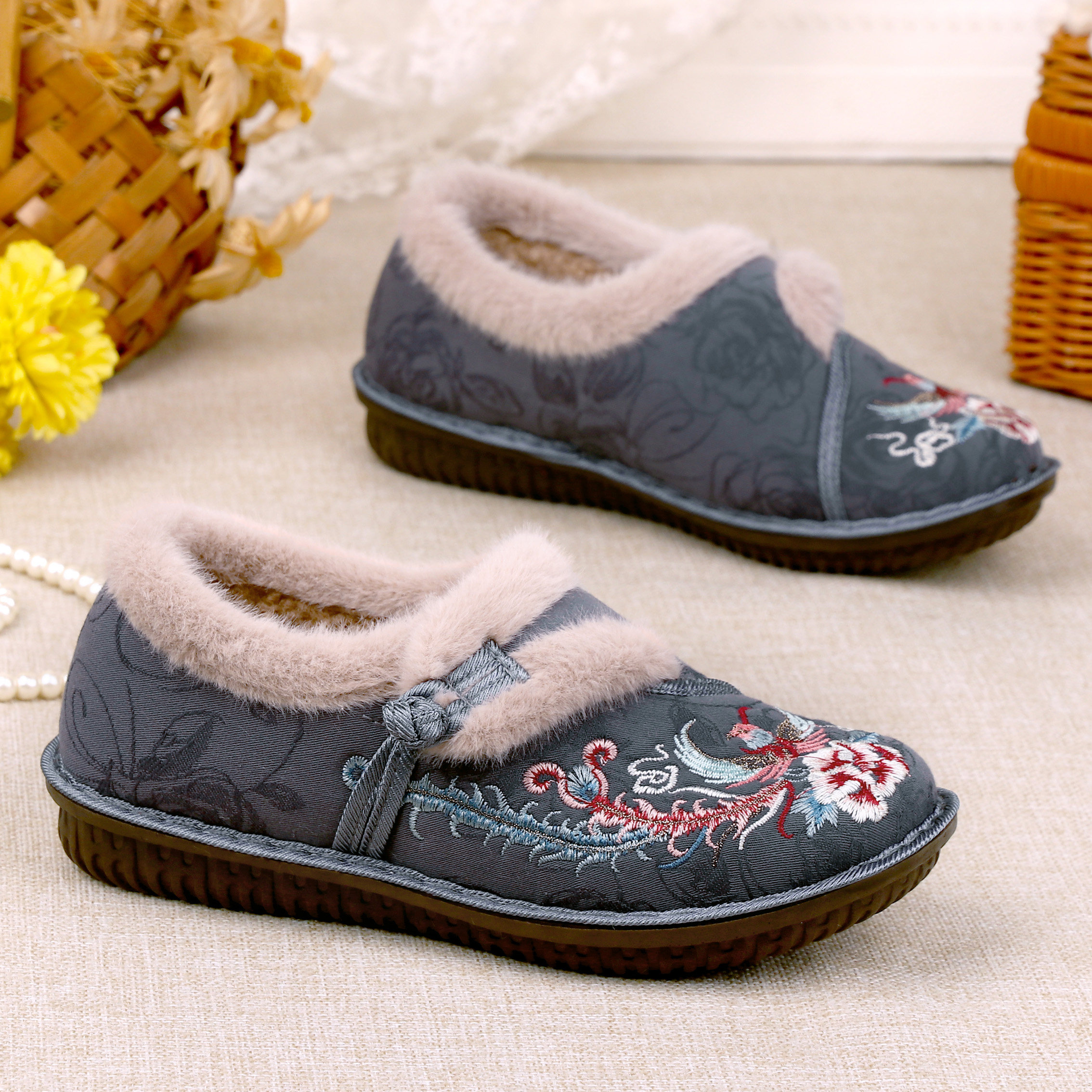 这款秋冬季老北京布鞋专为中老年女性设计,融合传统复古与现代舒适理念。鞋面采用精致手工刺绣,寓意吉祥,彰显典雅气质。内里加绒保暖,柔软亲肤,有效抵御寒冷,适合秋冬日常穿着。鞋底选用防滑耐磨橡胶材质,软底设计减轻足部压力,行走更稳更舒适。鞋型贴合脚型,松紧适中,穿脱方便,特别适合妈妈辈日常居家、散步或短途出行。既保留老北京布鞋的经典韵味,又兼顾实用性与安全性,是送给母亲、长辈的贴心之选,温暖从脚开始。