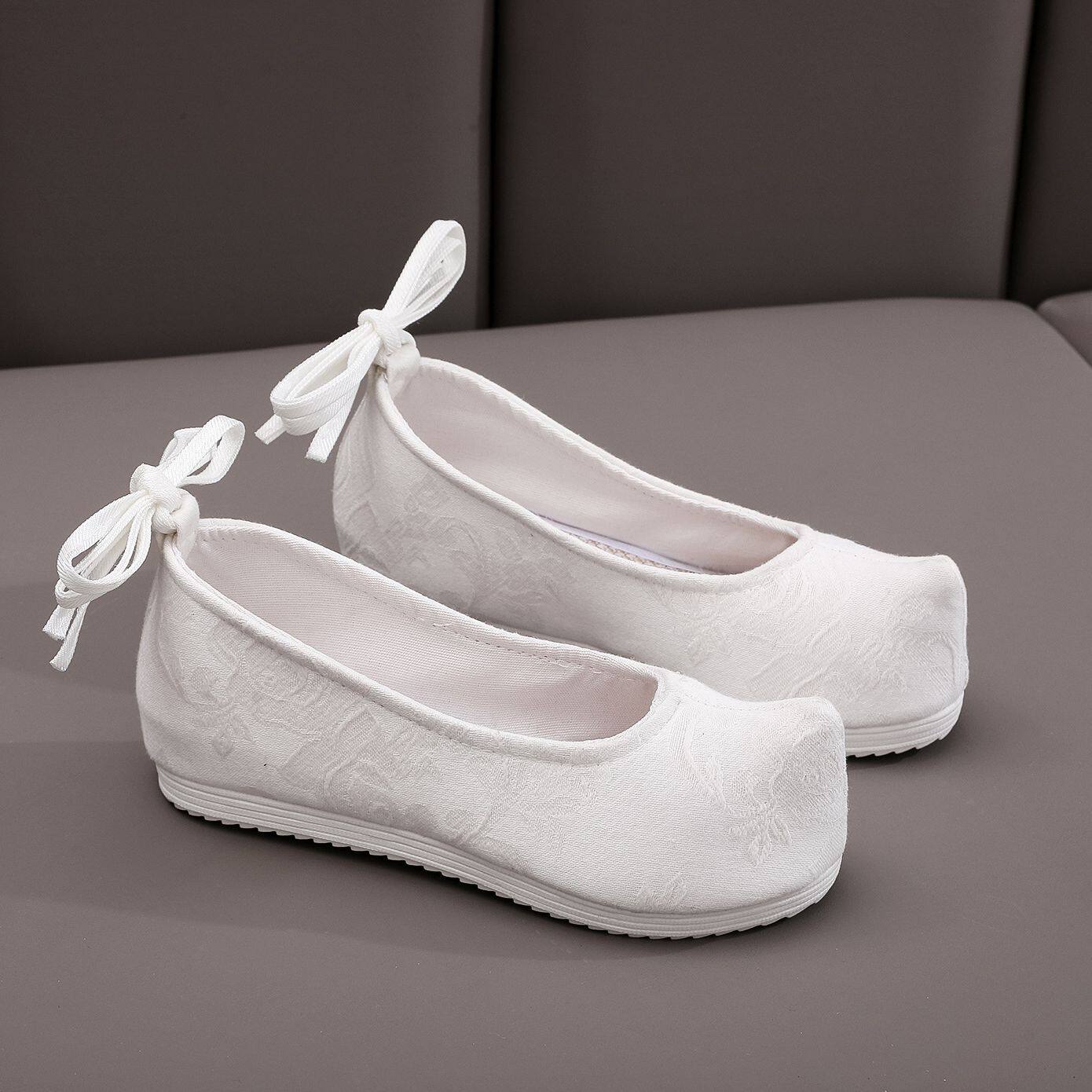 出租古装鞋子女翘头内增高绣花鞋弓鞋古风软底舞蹈搭配汉服平底鞋