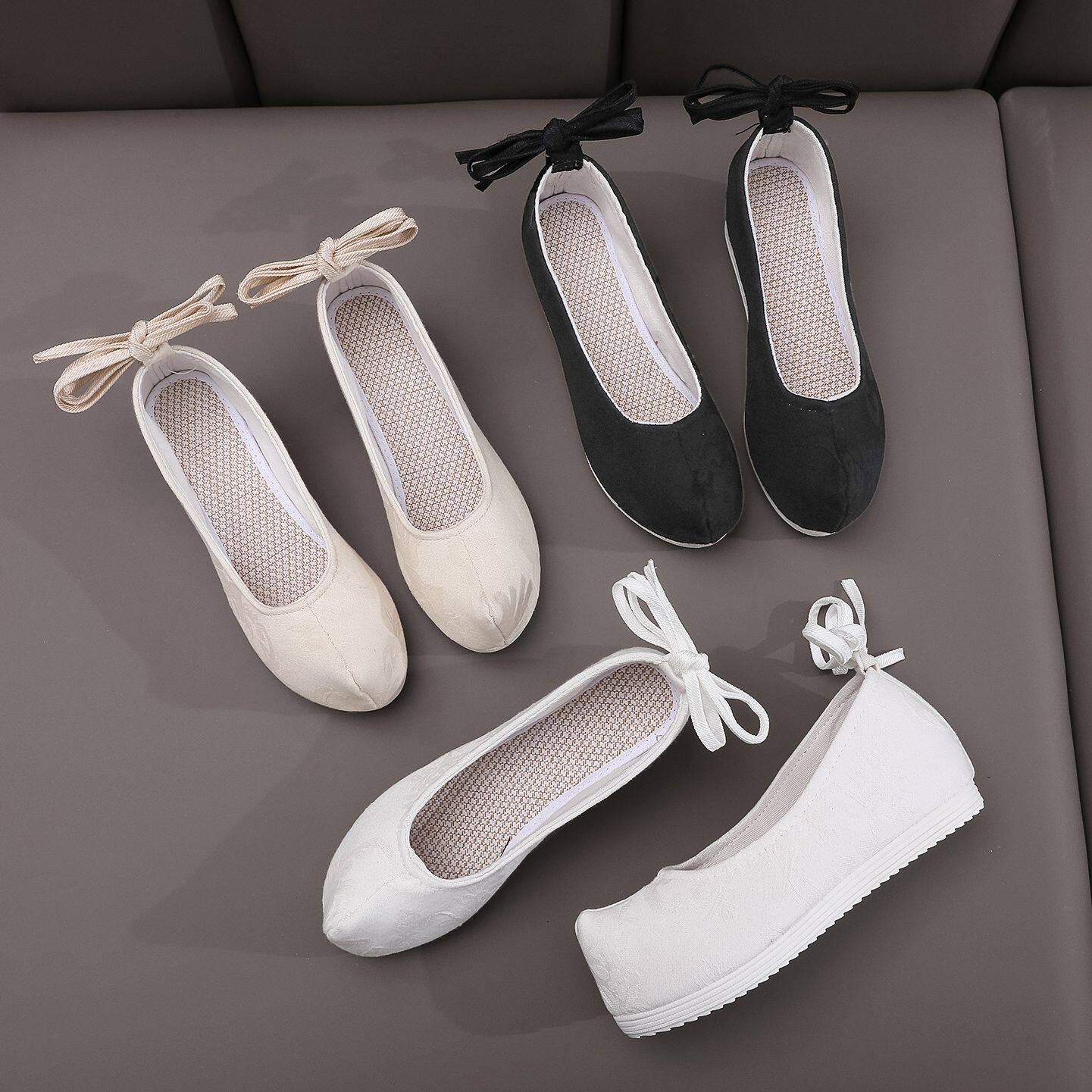 老北京坡跟布鞋内增高民族风绣花汉服鞋舞蹈鞋浅口圆头妈妈单鞋夏