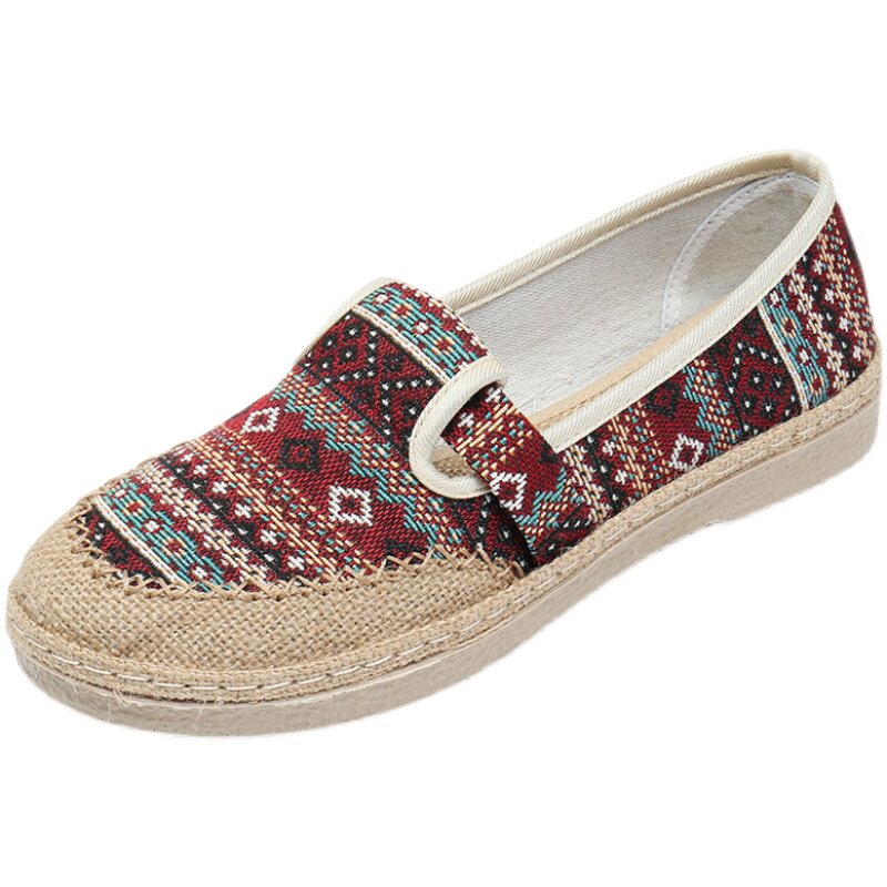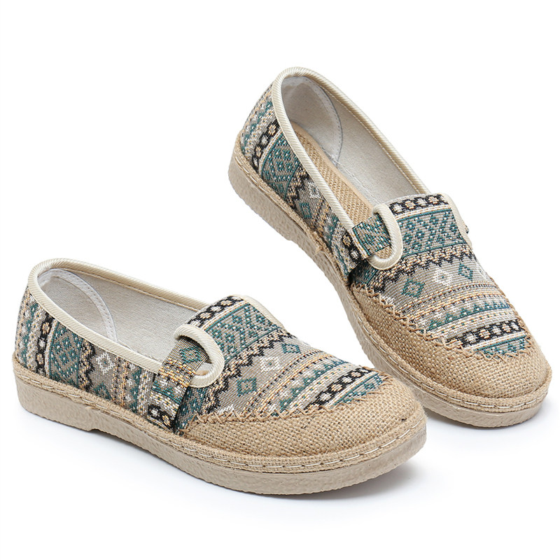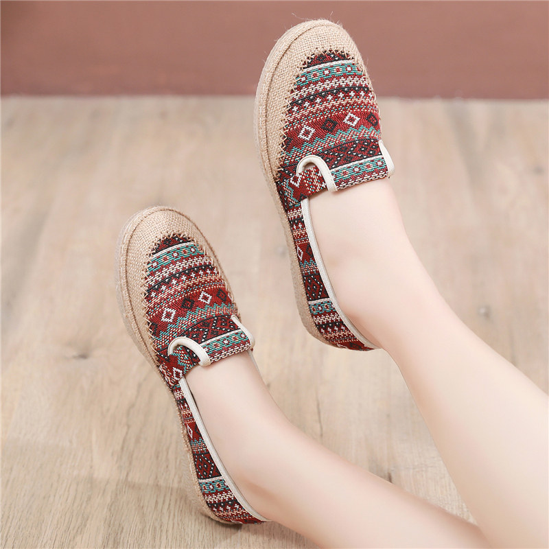 淘宝春秋季新款老北京绣花布鞋女单鞋复古妈妈鞋平底透气亚麻鞋懒人鞋