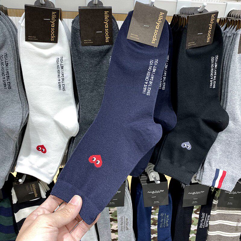 淘宝韩国东大门男袜纯色爱心眼睛中筒袜简约商务休闲棉袜秋冬款进口