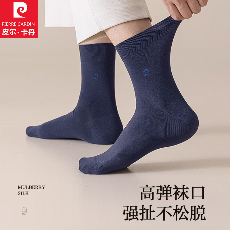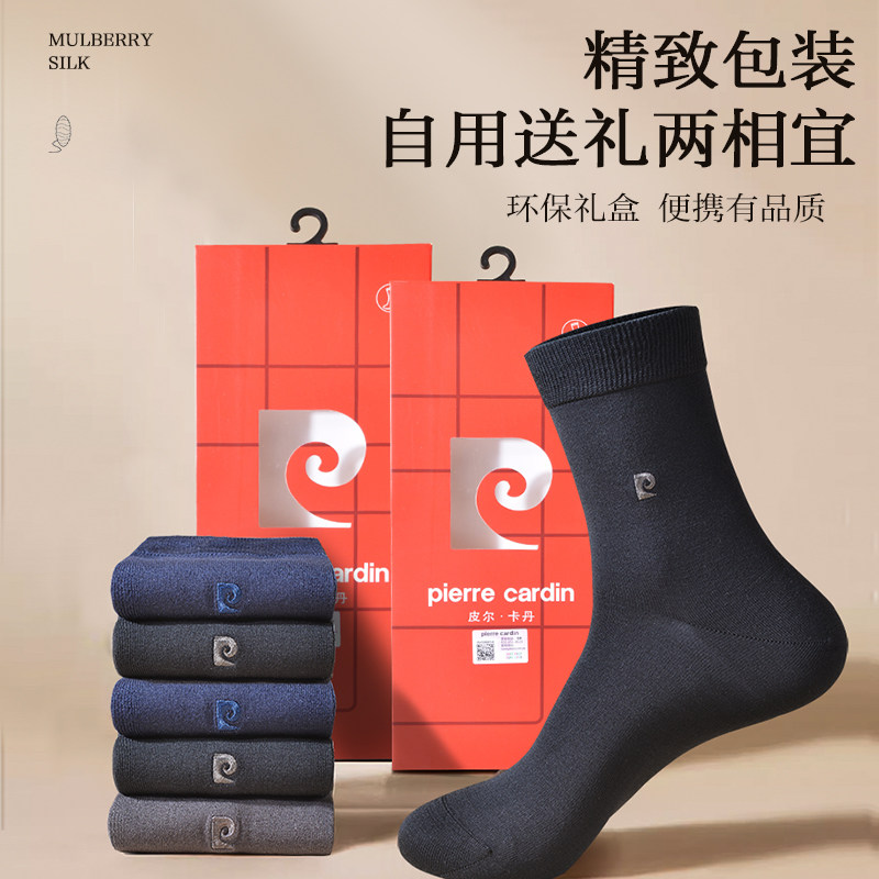 天猫皮尔卡丹男袜秋季桑蚕丝长筒袜子男士商务防臭礼盒装冬天无骨棉袜
