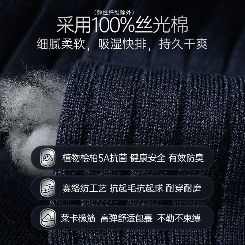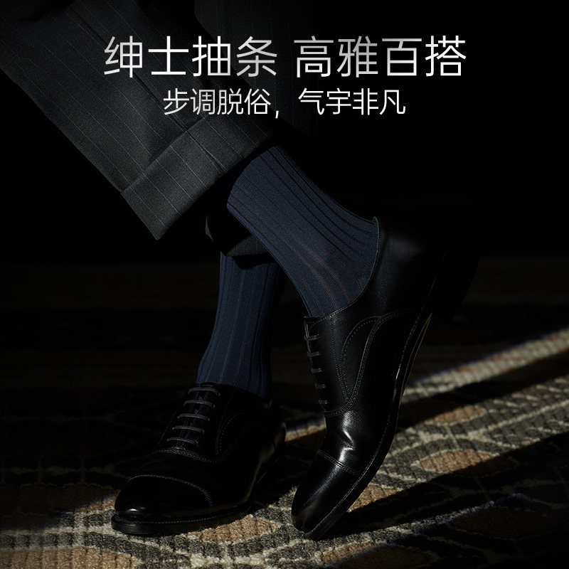 天猫高筒商务男袜正装袜子100%棉中筒袜抗菌防臭纯棉黑色绅士皮鞋袜