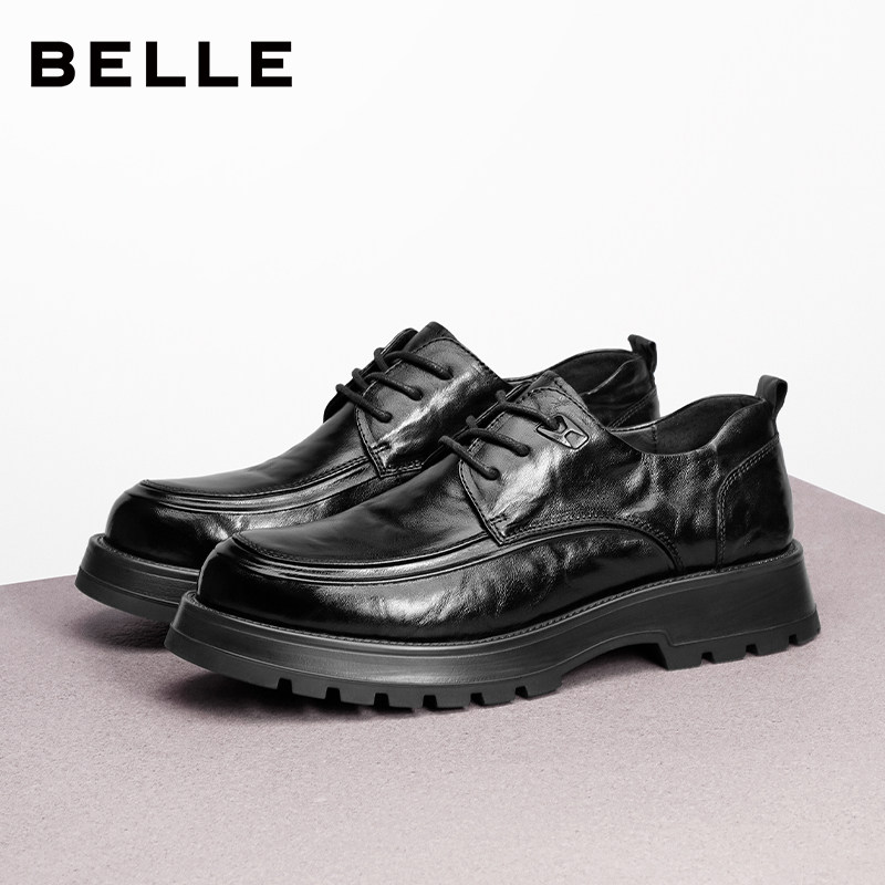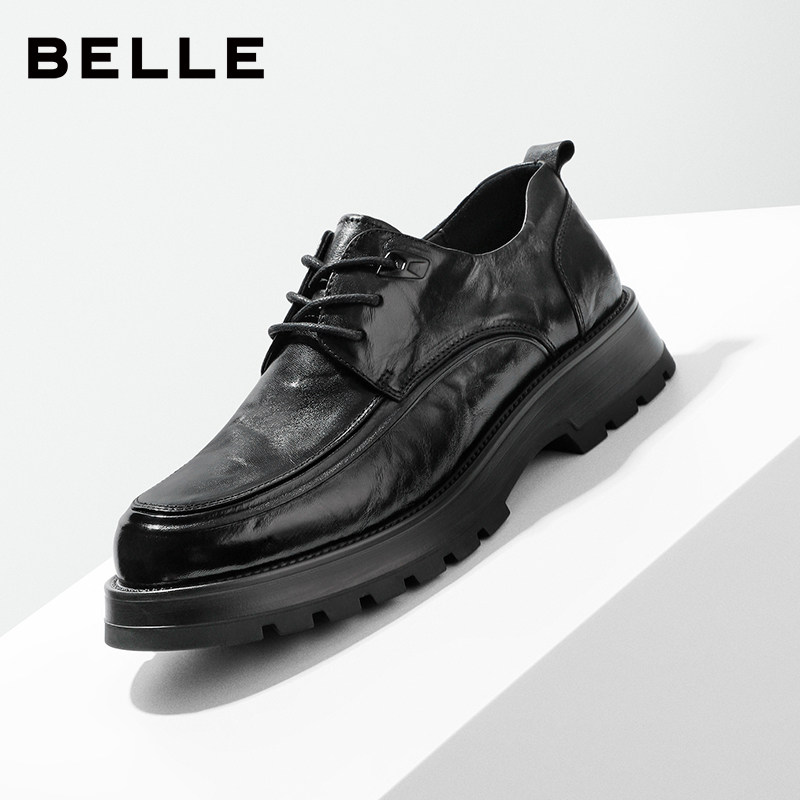 天猫百丽男鞋厚底增高德比结婚鞋男士商务正装休闲褶皱真皮鞋A1422AM4