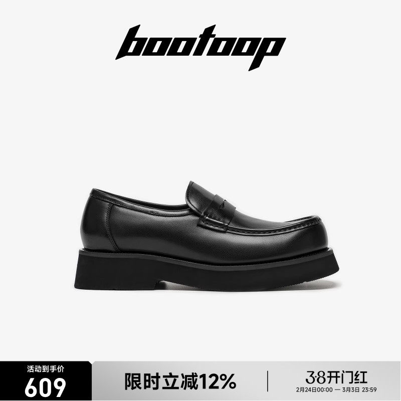 淘宝bootoop方头皮鞋大头厚底增高休闲鞋真皮一脚蹬乐福鞋男老钱风