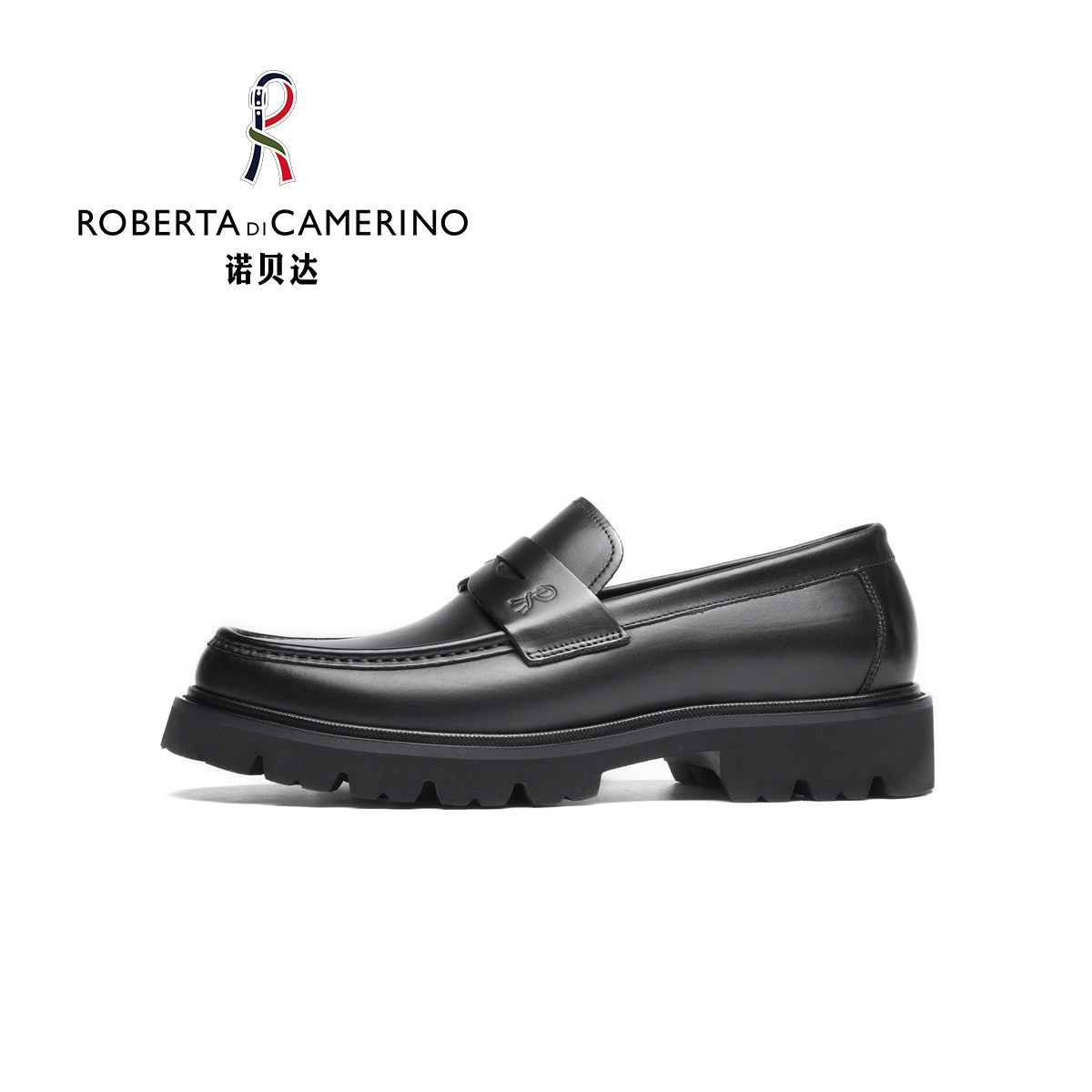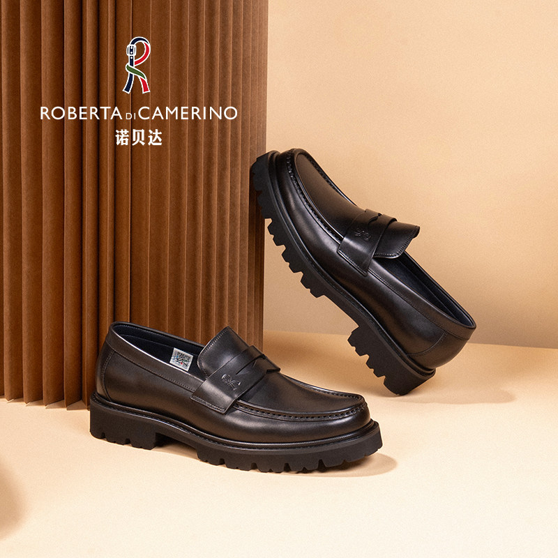 天猫意大利诺贝达男鞋男士商务休闲皮鞋男真皮厚底方头青年套脚乐福鞋