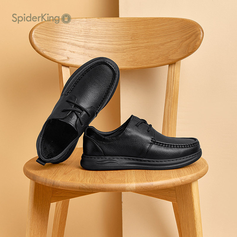 蜘蛛王男鞋官方旗舰2025冬新款商务正装皮鞋,精选优质加绒牛皮材质,兼具保暖性与舒适感,适合寒冷季节穿着。鞋面采用经典系带设计,搭配便捷套脚结构,既彰显商务干练气质,又提升日常穿脱便利性。内里柔软透气,有效排湿防闷,长时间行走依然干爽自在。鞋底防滑耐磨,提供稳健支撑,兼顾安全与耐用。整体设计简约大气,线条流畅,完美适配正装、休闲等多种场合,是都市精英男士冬季衣橱的理想之选。蜘蛛王以匠心工艺打造品质鞋履,演绎现代男士的优雅与自信。