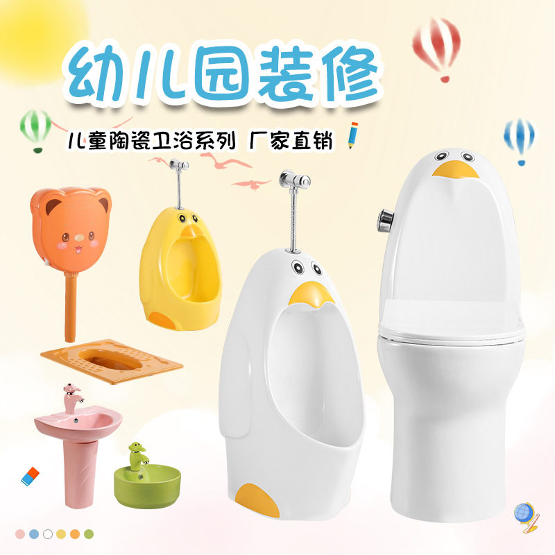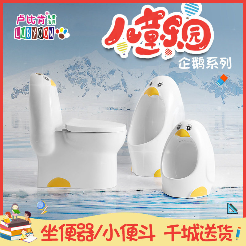 淘宝幼儿园小便斗创意卡通企鹅设计儿童陶瓷马桶男孩家用挂墙式卫生间