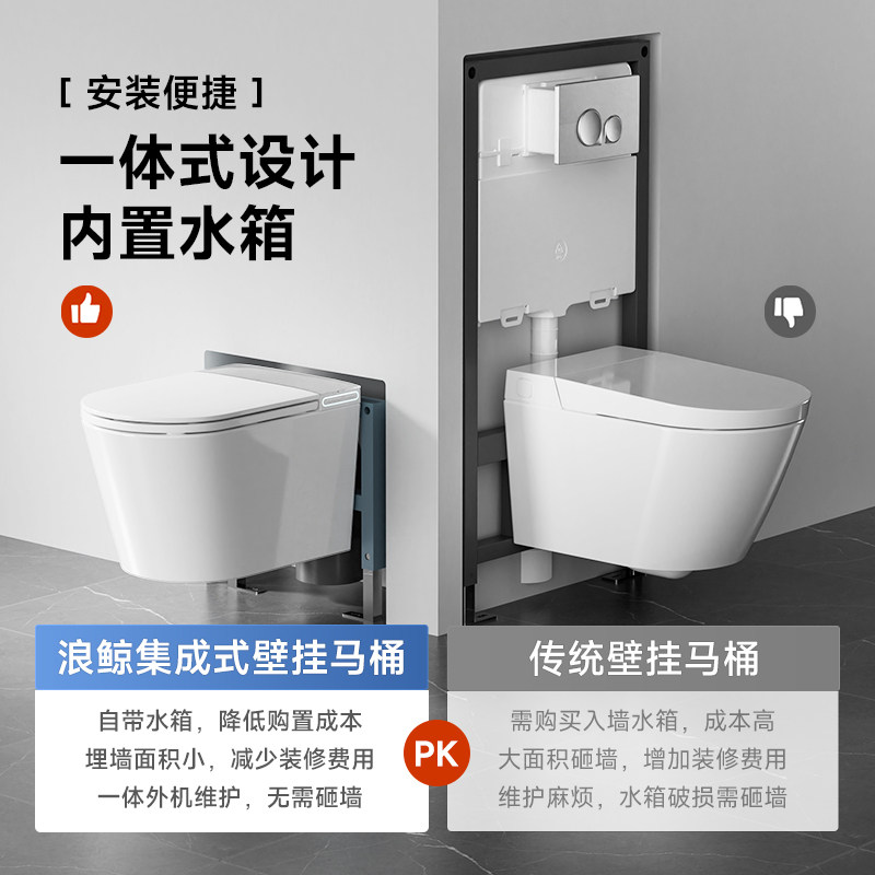 浪鲸卫浴壁挂全自动智能马桶,集科技、健康与美学于一体。采用隐藏式水箱设计,节省空间,安装灵活,适配多种户型。配备全自动感应系统,脚感翻盖、离座冲水,操作便捷卫生。内置高效UV紫外线杀菌功能,有效杀灭细菌,守护家人健康。创新零压启动技术,不受水压限制,高层、老旧小区均可稳定使用。一体成型陶瓷体,易清洁抗污,搭配即热恒温座圈与多档清洗模式,舒适体验升级。更享政府节能补贴政策,降低购买成本,环保又实惠。浪鲸智能马桶,以匠心品质引领智慧卫浴新体验。