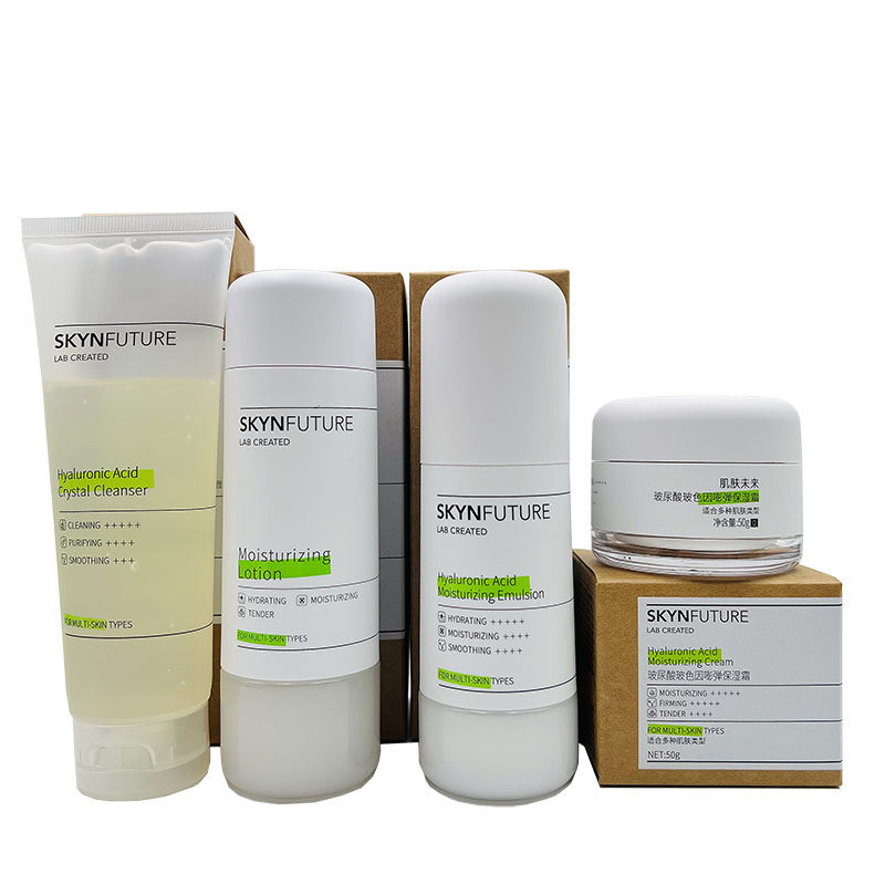 肌肤未来玻尿酸玻色因套装,专为追求水润紧致肌肤的人群设计。套装包含温和洁面啫喱、深度保湿水、双重补水乳液及面霜,四步协同呵护肌肤。洁面啫喱温和洁净,不破坏肌肤屏障;保湿水蕴含高浓度玻尿酸,深层补水,提升肌肤含水量;乳液质地轻盈,双重补水配方迅速渗透,锁住水分;面霜则融合玻色因与玻尿酸,强化肌肤弹性,持久保湿。整套产品无酒精、无香精,敏感肌亦可安心使用。坚持使用,肌肤更显饱满、细腻、富有弹性,焕发健康水润光采,是现代护肤的理想之选。