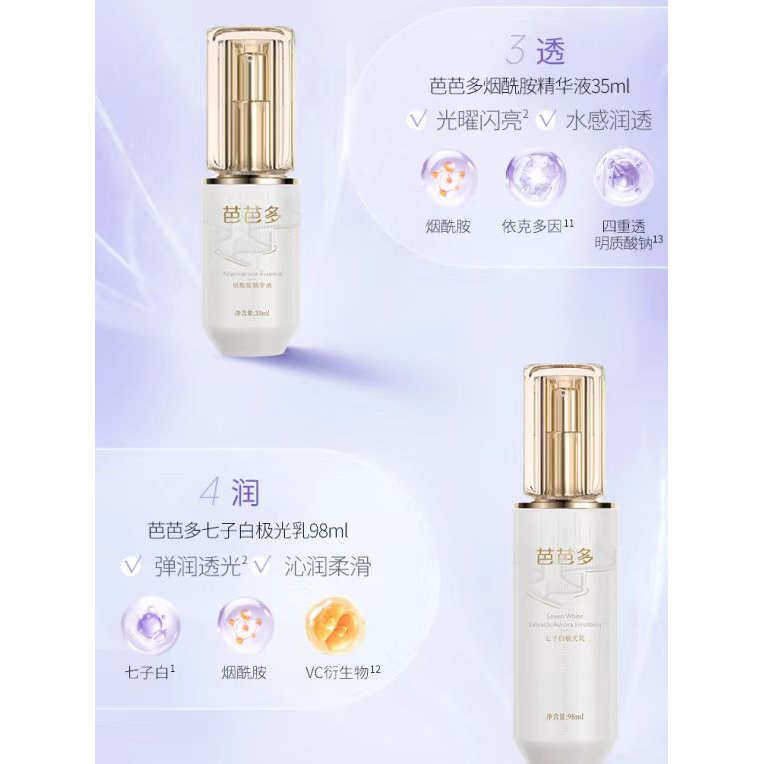 淘宝芭芭多七子白极光系列 洁面乳爽肤水乳液精华面霜 烟酰胺保湿正品