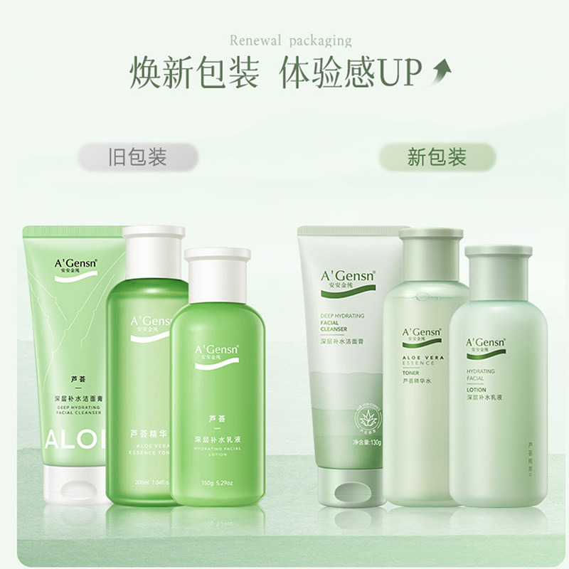 淘宝安安金纯芦荟深层补水套装洁面膏爽肤水精华水保湿乳霜补水霜乳液