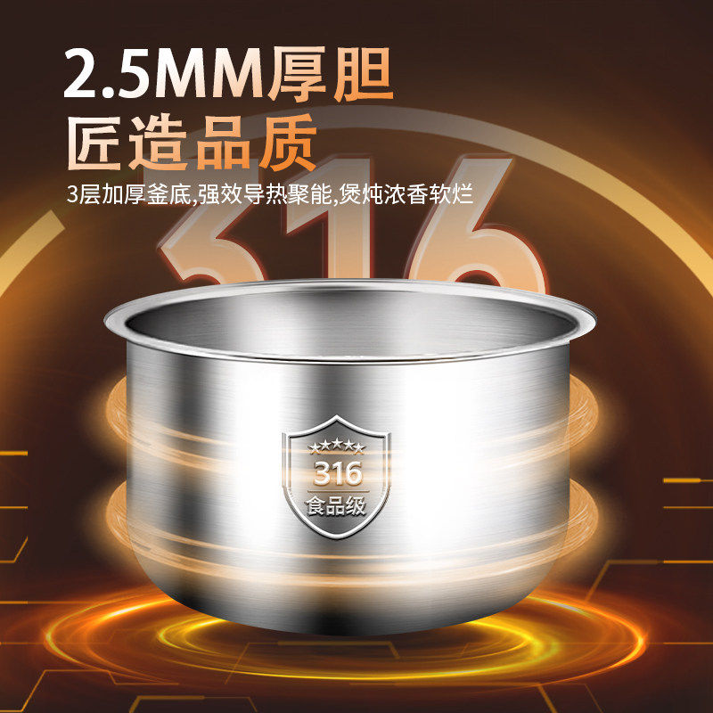 淘美的电饭煲电压力锅不粘内胆大全1.6L/2L/3L/4L/5L/6L不锈钢内胆