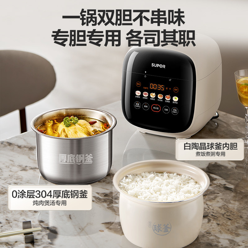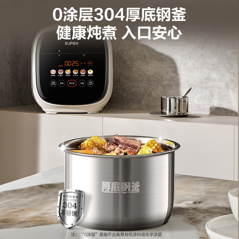 天猫苏泊尔电压力锅家用2.5L小容量0涂层不锈钢内胆多功能智能电压锅
