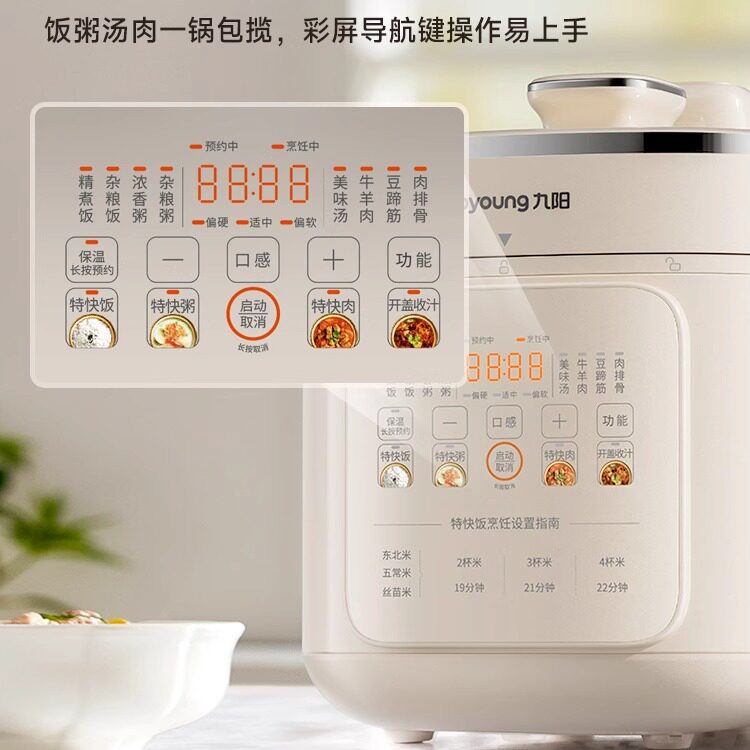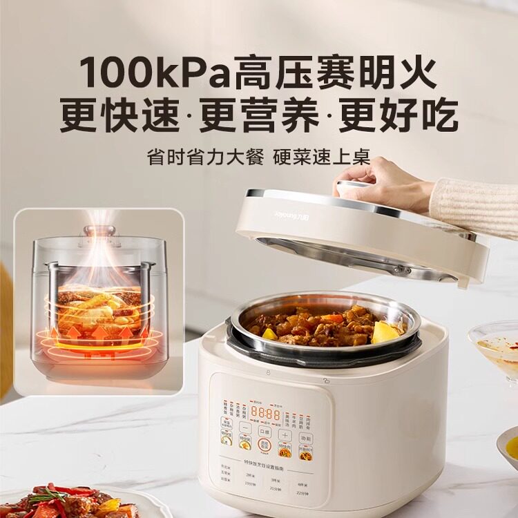 天猫九阳电压力锅家用5L大容量0涂层双胆多功能智能高压饭煲6烹饪机新