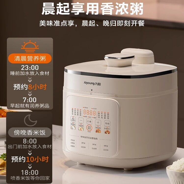 九阳电压力锅家用5L大容量0涂层双胆多功能智能高压饭煲,集安全、健康与高效于一体。采用创新0涂层不锈钢内胆,杜绝化学涂层脱落风险,使用更安心;配备双胆设计(不锈钢+铝合金),专胆专用,避免串味,满足多样烹饪需求。5L大容量适合3-6人家庭,一锅多能,支持煮饭、炖汤、红烧、蒸煮、杂粮饭等6大智能菜单,一键操作,省时省力。智能控压技术精准调节火候,锁住营养与鲜味。24小时预约功能,随时享用热腾腾美食。简约触控面板,操作便捷,是追求健康饮食家庭的理想之选。