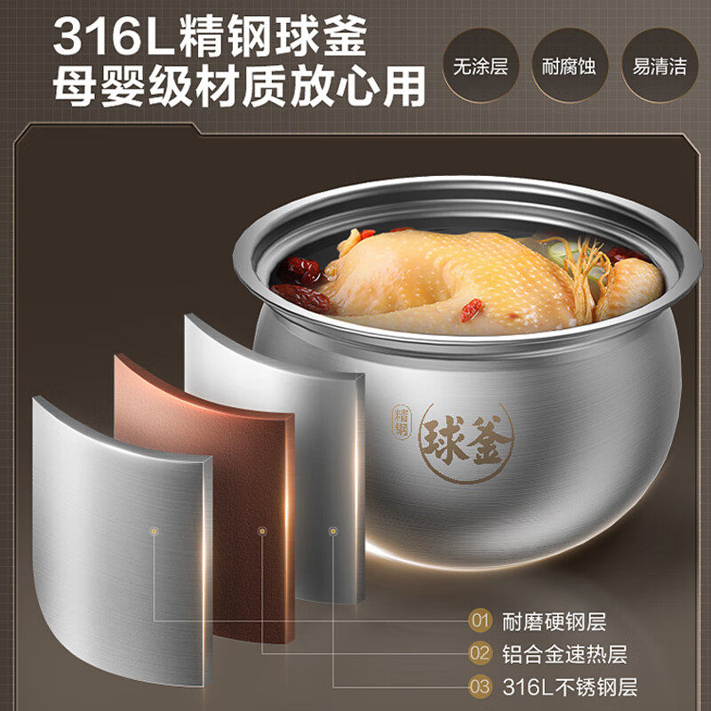 苏泊尔球釜IH电压力锅是一款集智能、高效与多功能于一体的家用厨房电器,拥有5L大容量设计,满足3-6人家庭日常烹饪需求。采用IH立体加热技术,配合球形厚釜内胆,实现均匀导热,锁住食材营养与鲜味。支持压力烹饪、米饭、煲汤、炖肉、蒸煮等多种模式,一锅多用,省时节能。智能触控面板操作简便,配备24小时预约功能和多重安全保护系统,使用更安心。无论是煮饭、炖汤还是焖烧,都能轻松应对,是现代家庭提升烹饪效率的理想选择。球釜设计更贴合食材受热规律,让每一餐都香浓可口。