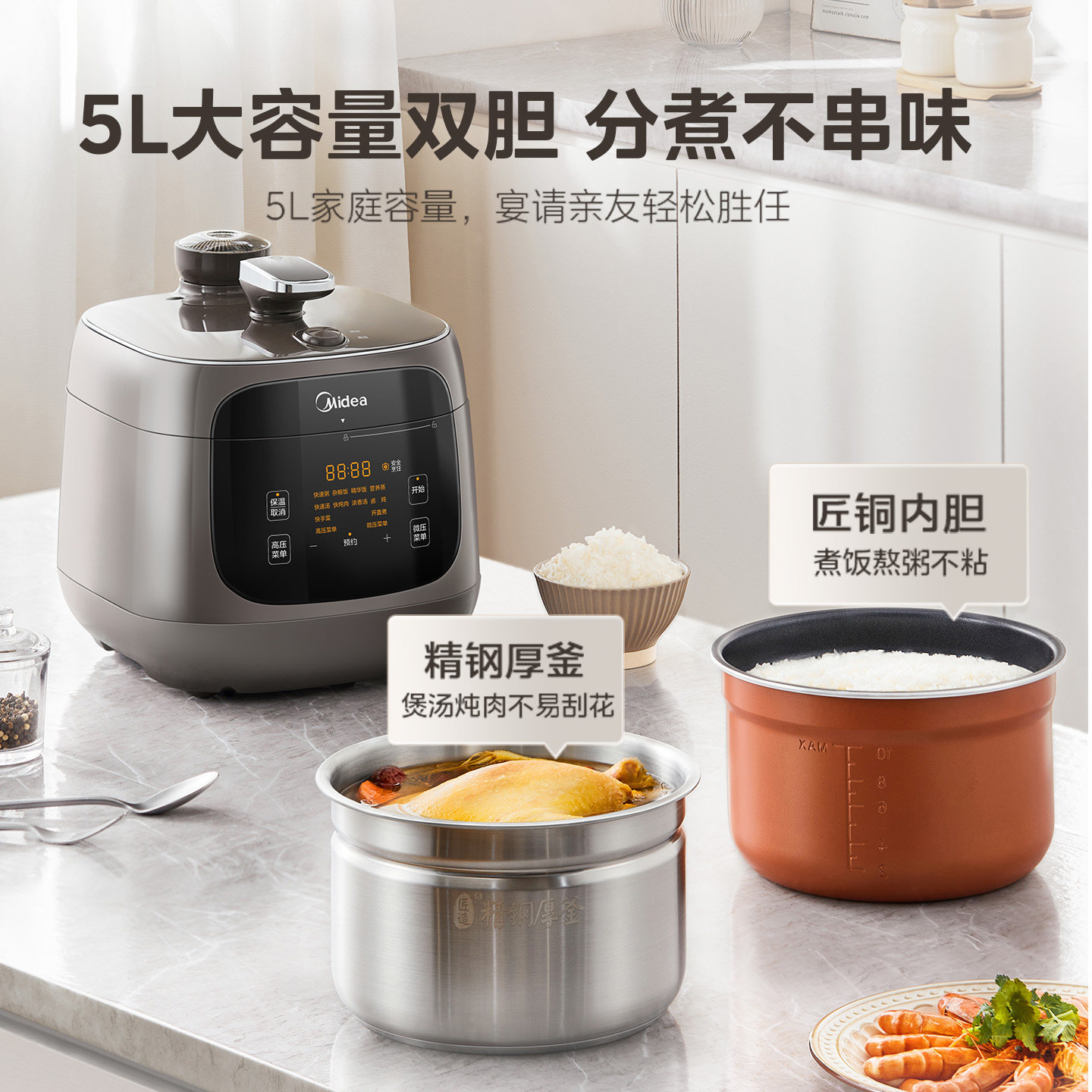 天猫美的新款电压力锅家用0涂层双胆高压电饭煲多功能正品官方旗舰店