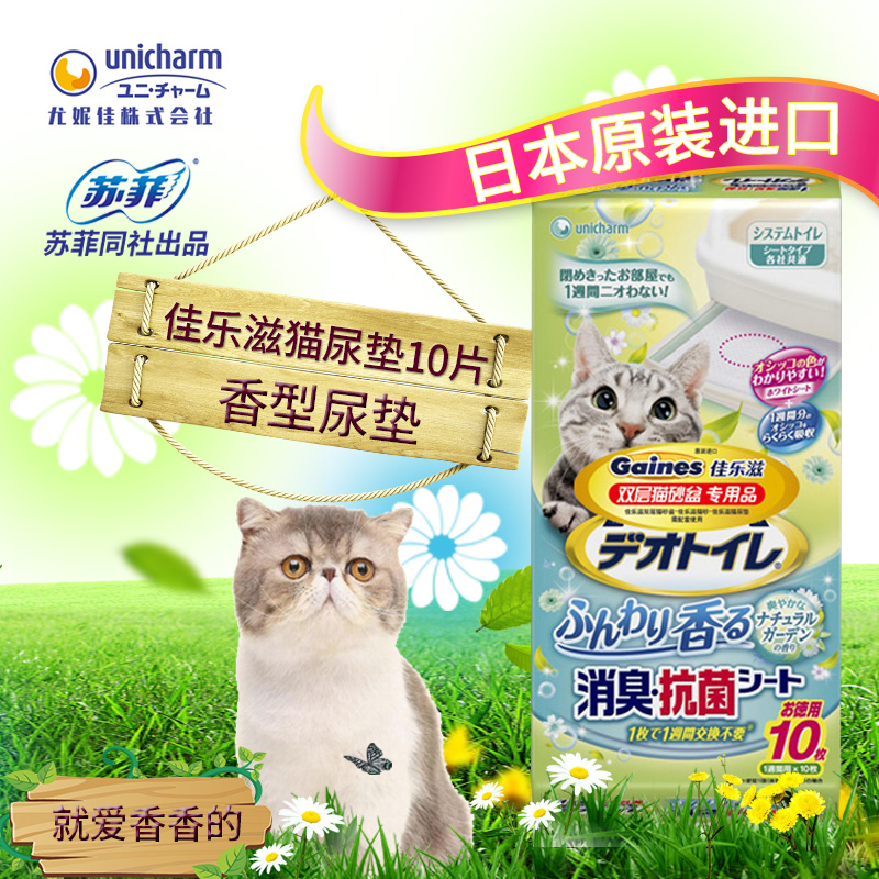 日本进口佳乐滋猫尿垫 吸水除臭抑菌猫砂盆专用加厚尿片10片包邮