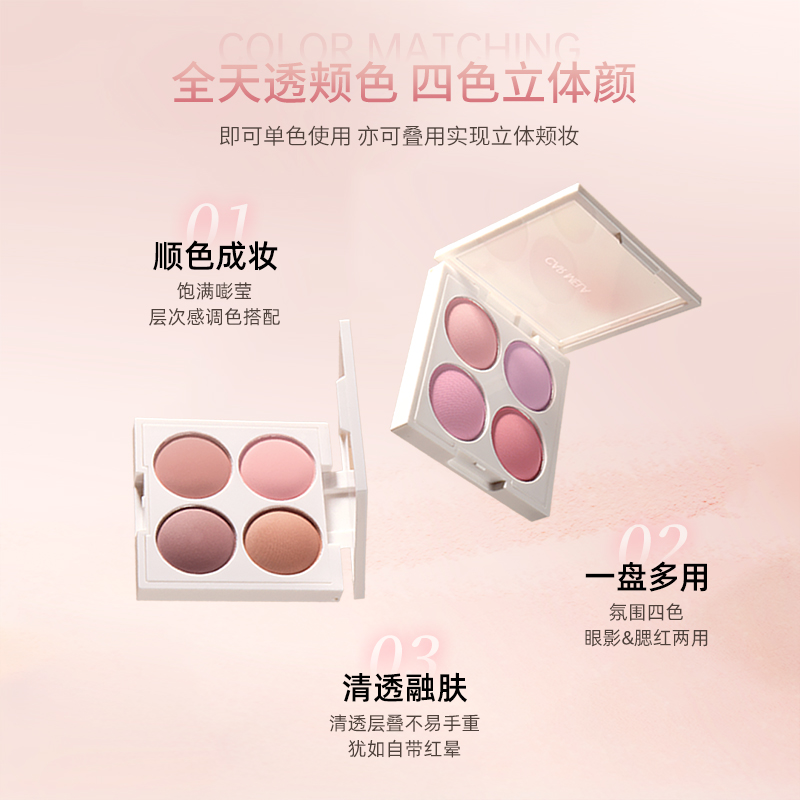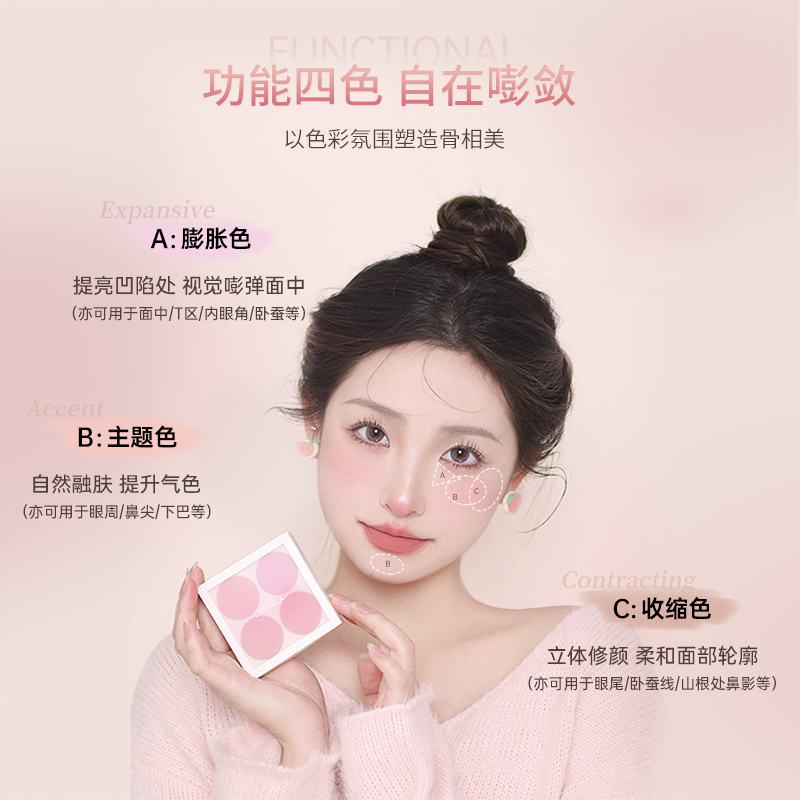 淘宝卡梅拉氛围四色腮红粉色杏色橘调哑光提亮修容膨胀色收缩眼影晒红