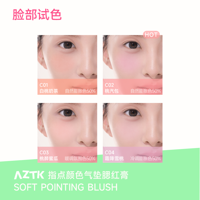 天猫【直播专用】AZTK气垫腮红膏泥指点颜色收缩提亮膨胀色便携绒雾女