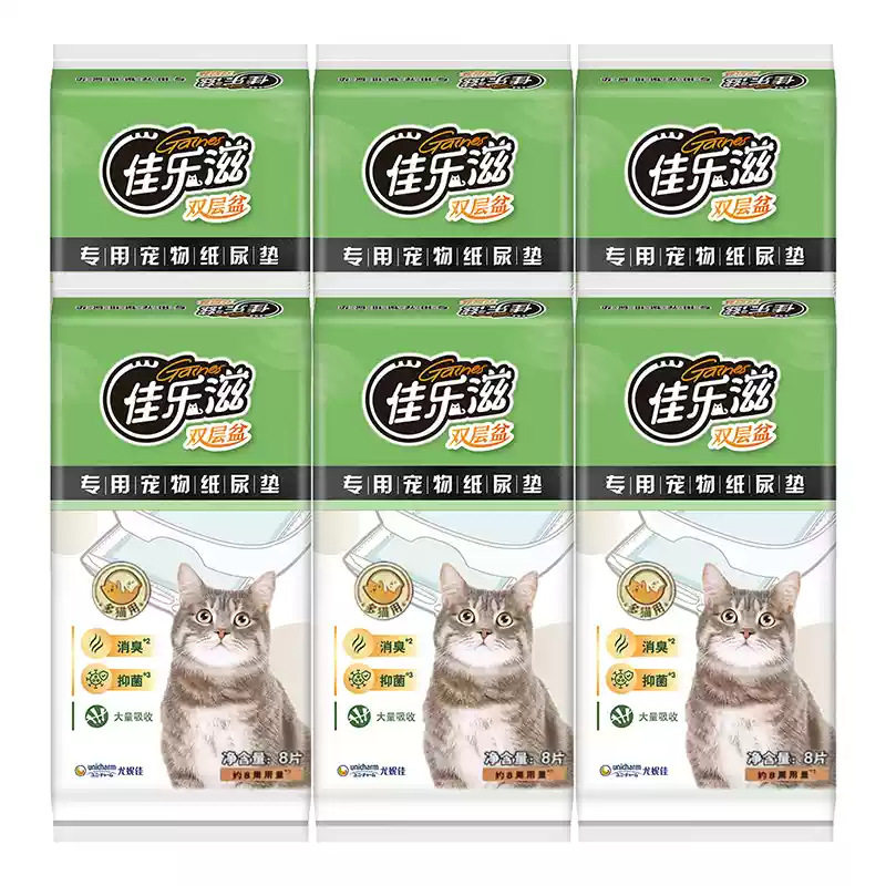 日本进口佳乐滋多猫加厚尿垫 除臭抑菌双层猫砂盆用双倍吸尿8片装