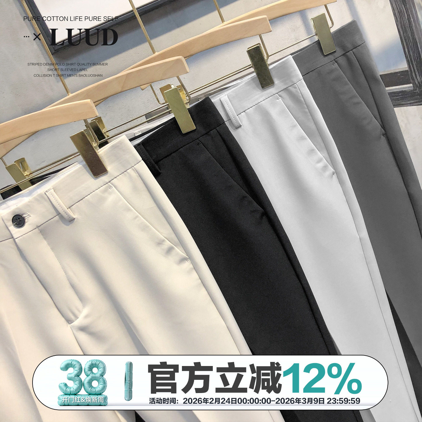 天【自由西一代】金利来西裤男2026春夏新款可机洗羊毛直筒商务长裤