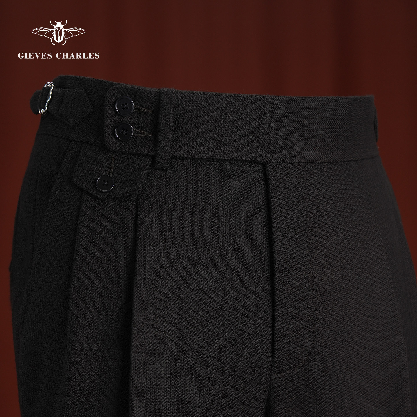 淘【100%羊毛粗花呢】CULTUM意式那不勒斯人字纹双褶高腰休闲西裤男