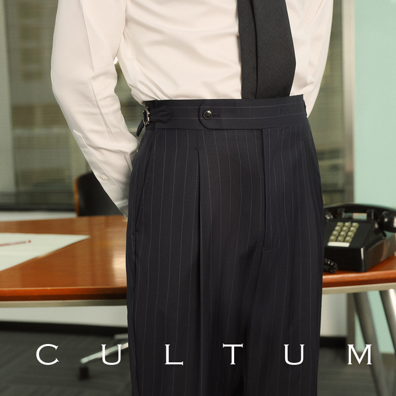 【70%澳洲美丽诺羊毛】CULTUM男士商务通勤竖条纹西裤,精选优质澳洲美丽诺羊毛,触感柔软细腻,保暖透气兼具,穿着舒适有型。高含量羊毛赋予西裤自然垂坠感与挺括版型,竖条纹设计视觉显瘦,彰显干练气质。采用先进工艺处理,实现可机洗、免熨烫功能,轻松打理,告别繁琐护理,完美契合快节奏都市生活。无论是日常通勤还是商务场合,都能展现优雅得体的职场形象。CULTUM以匠心工艺与实用设计,为现代男士打造高品质、易打理的精致西裤,是衣橱中不可或缺的百搭单品。