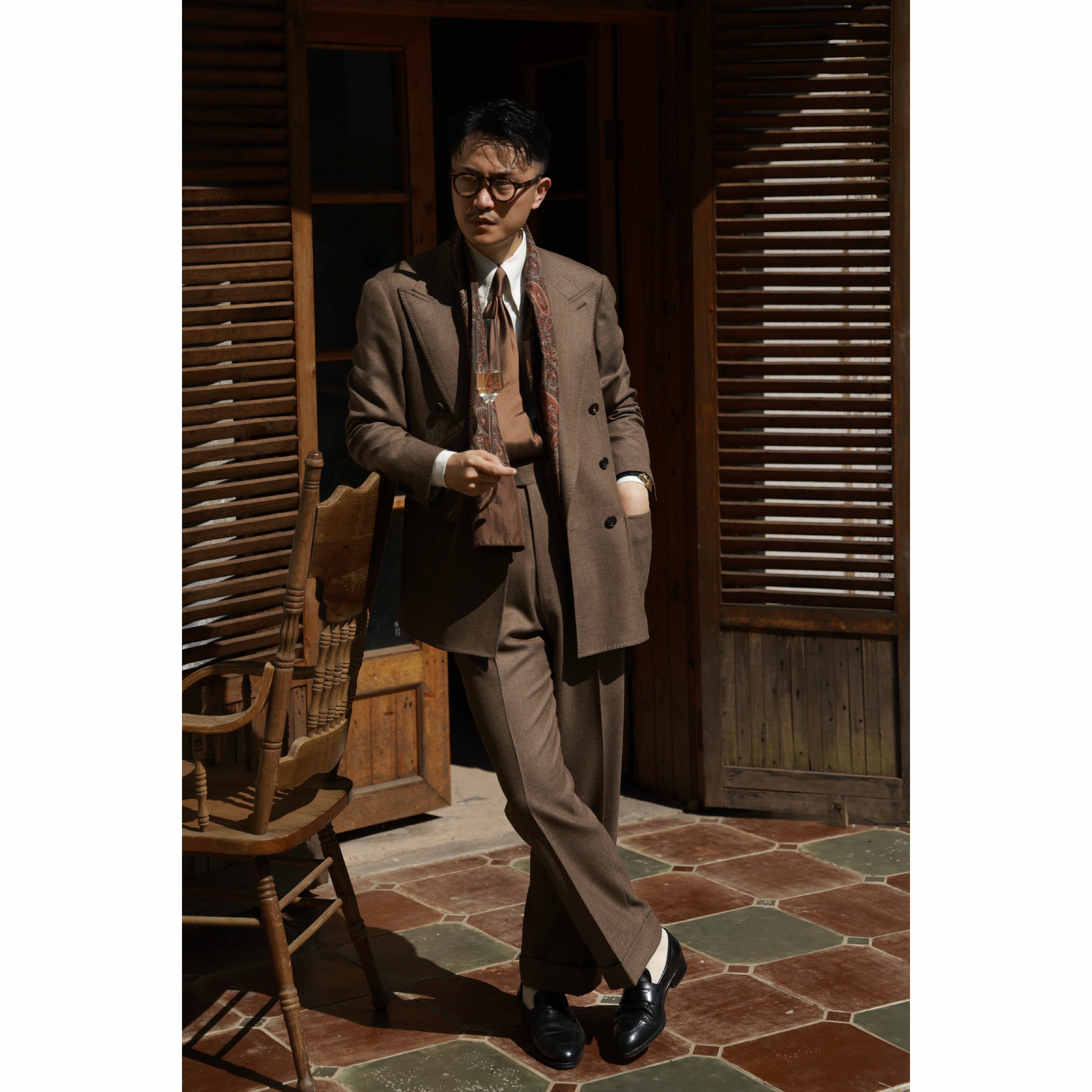 淘CULTUM1930s加厚450g重全羊毛呢优雅复古直筒双褶西裤男好莱坞裤