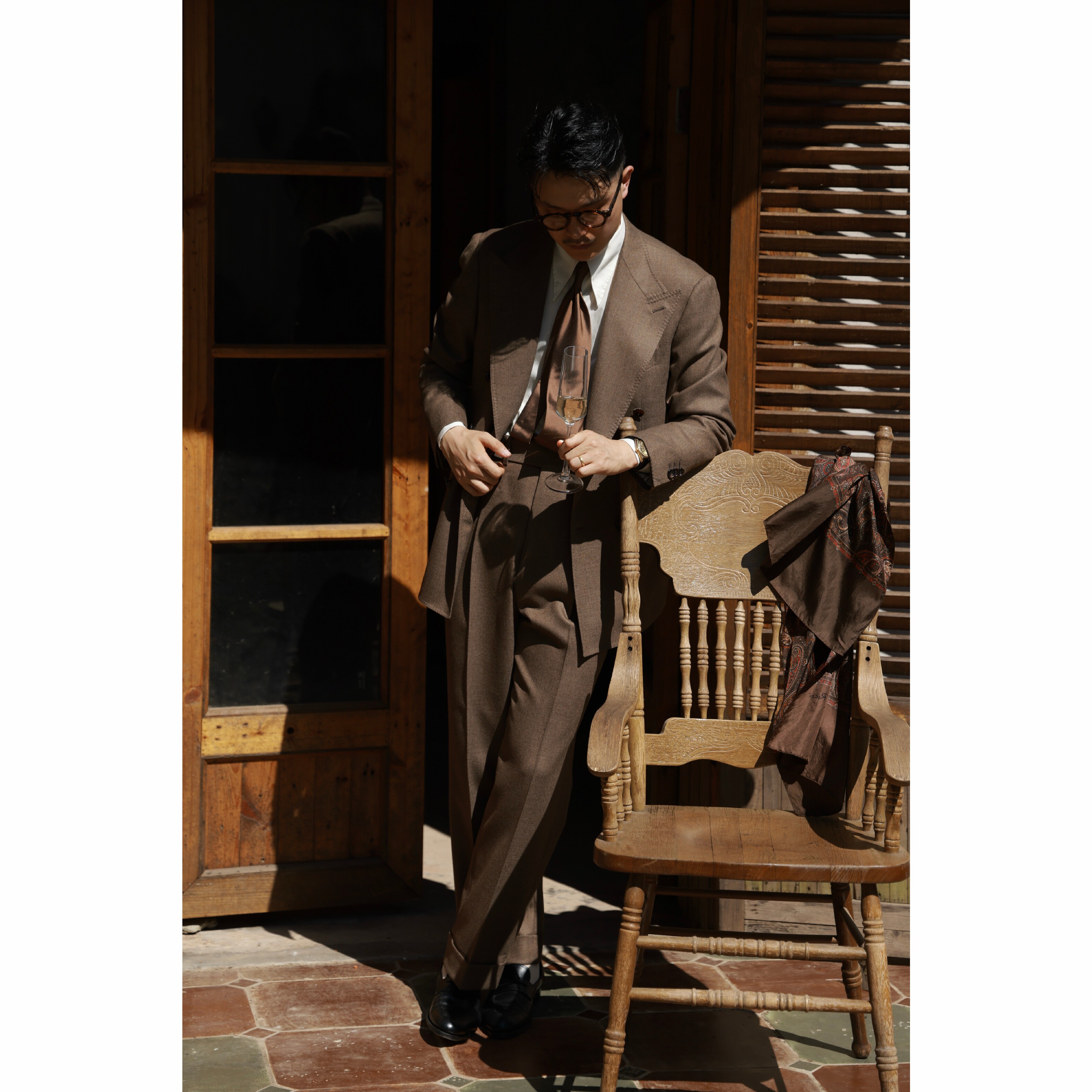【100%羊毛粗花呢】CULTUM意式那不勒斯人字纹双褶高腰休闲西裤男