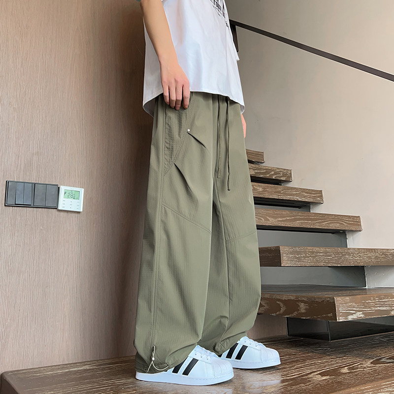 WHIMNOTION 25SS 可拆卸腰包打褶阔腿西裤男垂顺抗皱直筒休闲长裤
