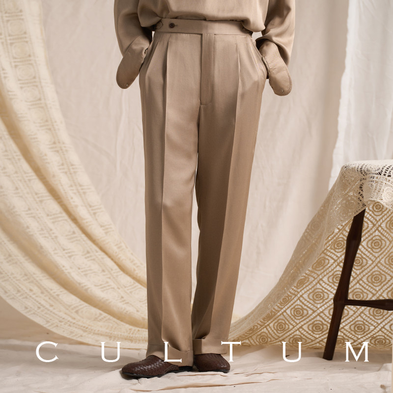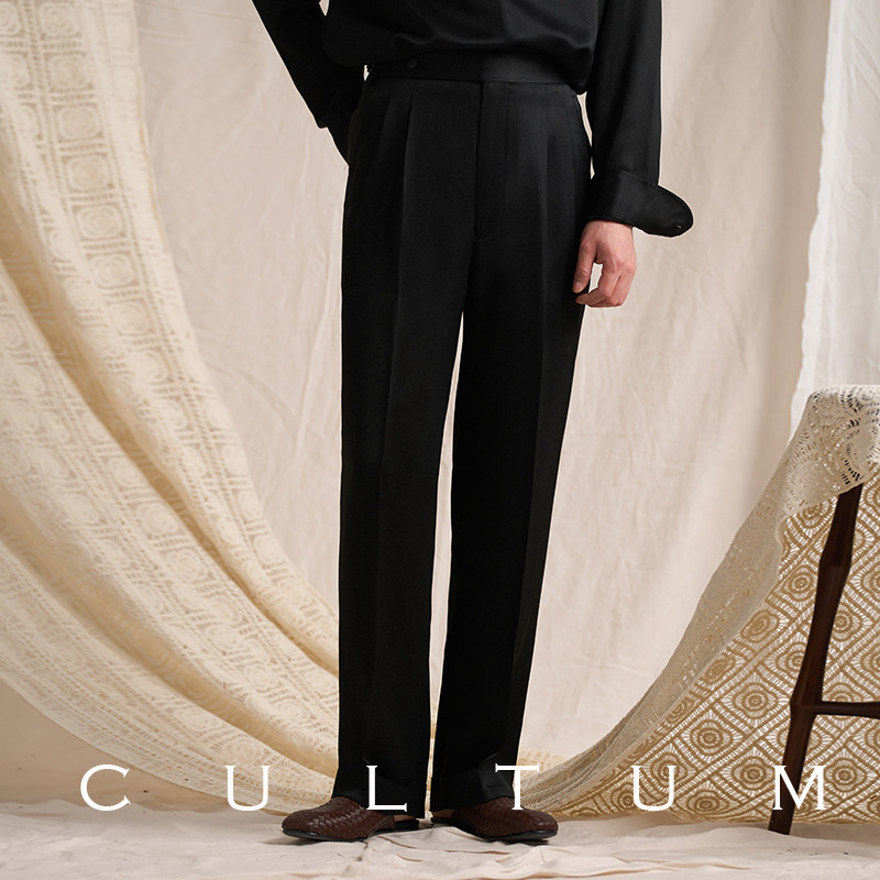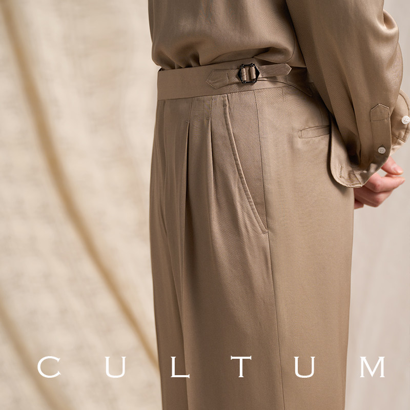 淘宝【垂感丝滑丝缎】CULTUM斜纹醋酸天丝亚麻双褶西裤男宽松休闲长裤