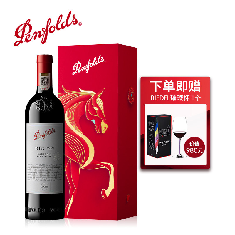 天猫奔富BIN707红酒马年礼盒装赤霞珠澳洲葡萄酒官方正品行货年货送礼