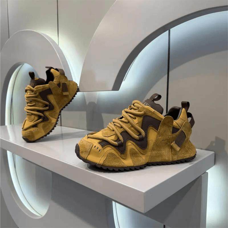 2024春季新款百搭潮流拼色休闲运动鞋,融合经典阿甘鞋型与现代老爹鞋设计,兼具复古与时尚感。采用优质翻毛皮材质,质感细腻,搭配大胆拼色设计,轻松驾驭多种穿搭风格。包底结构增强支撑力,缓震舒适,适合日常出行与轻度运动。鞋面融入透气孔设计,有效排汗散热,保持足部干爽。轻量化鞋底减轻负担,提升行走体验。无论是搭配牛仔裤、休闲裤还是运动装,都能展现潮流态度。这款男鞋集颜值、舒适与实穿性于一体,是春季衣橱不可或缺的百搭单品,轻松穿出街头型格。
