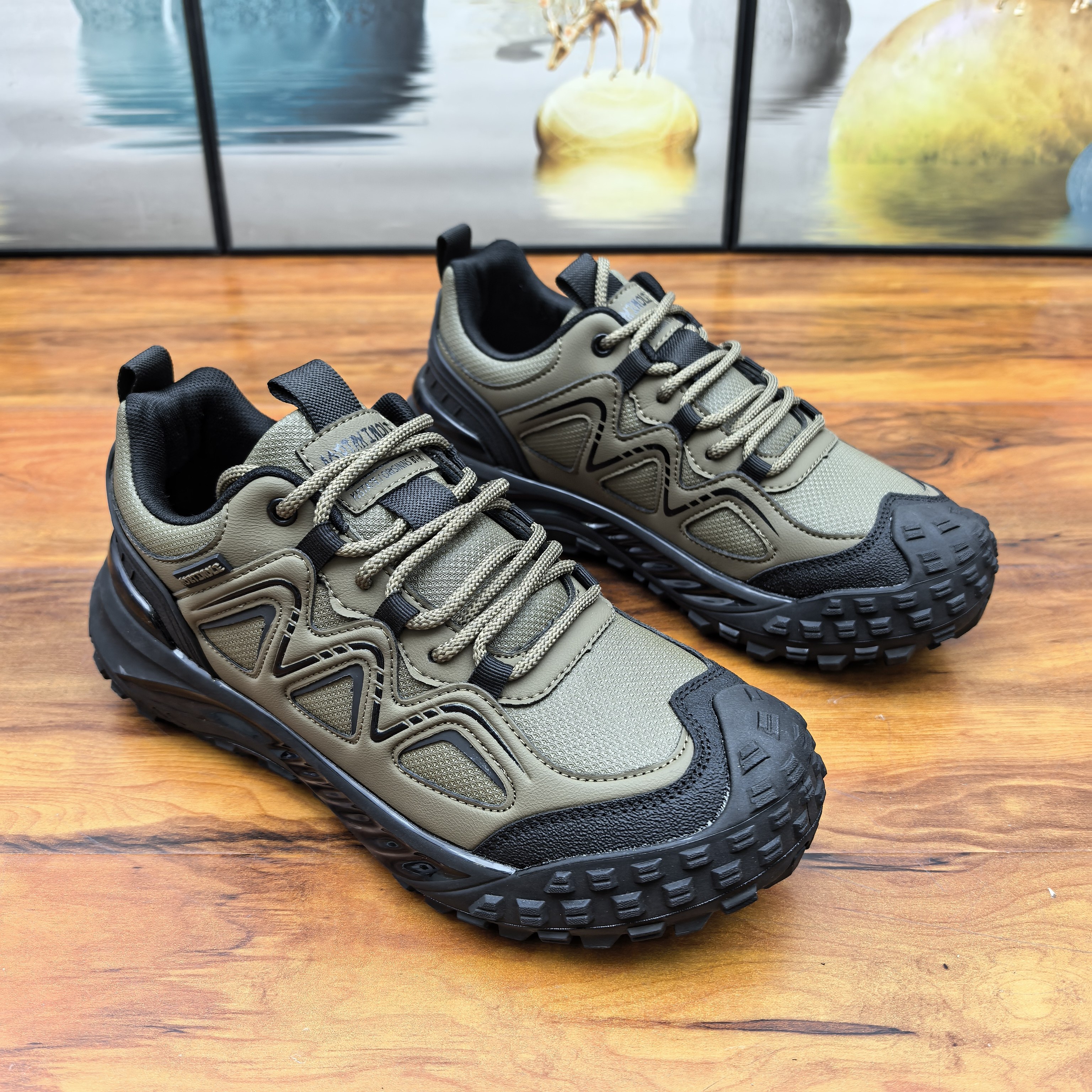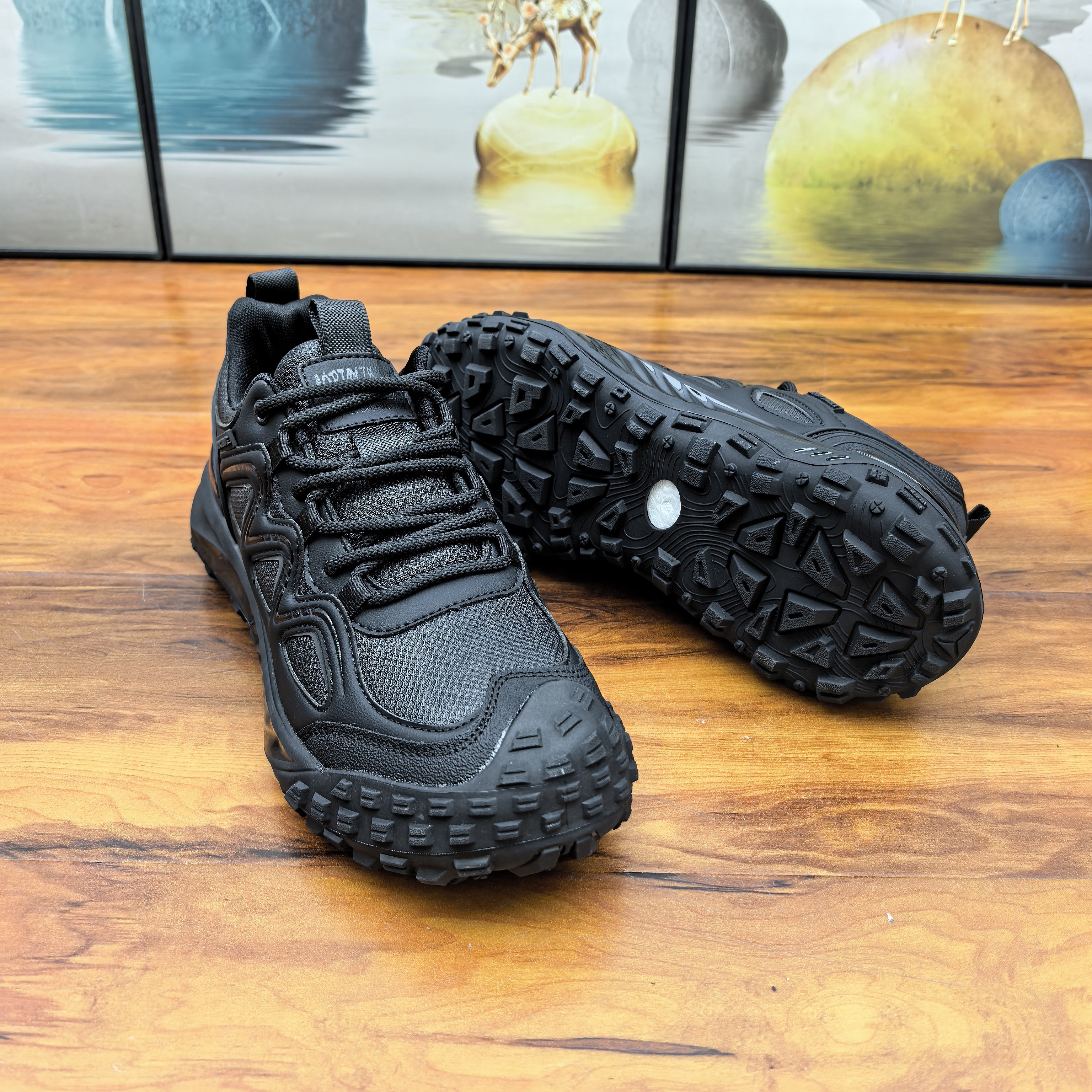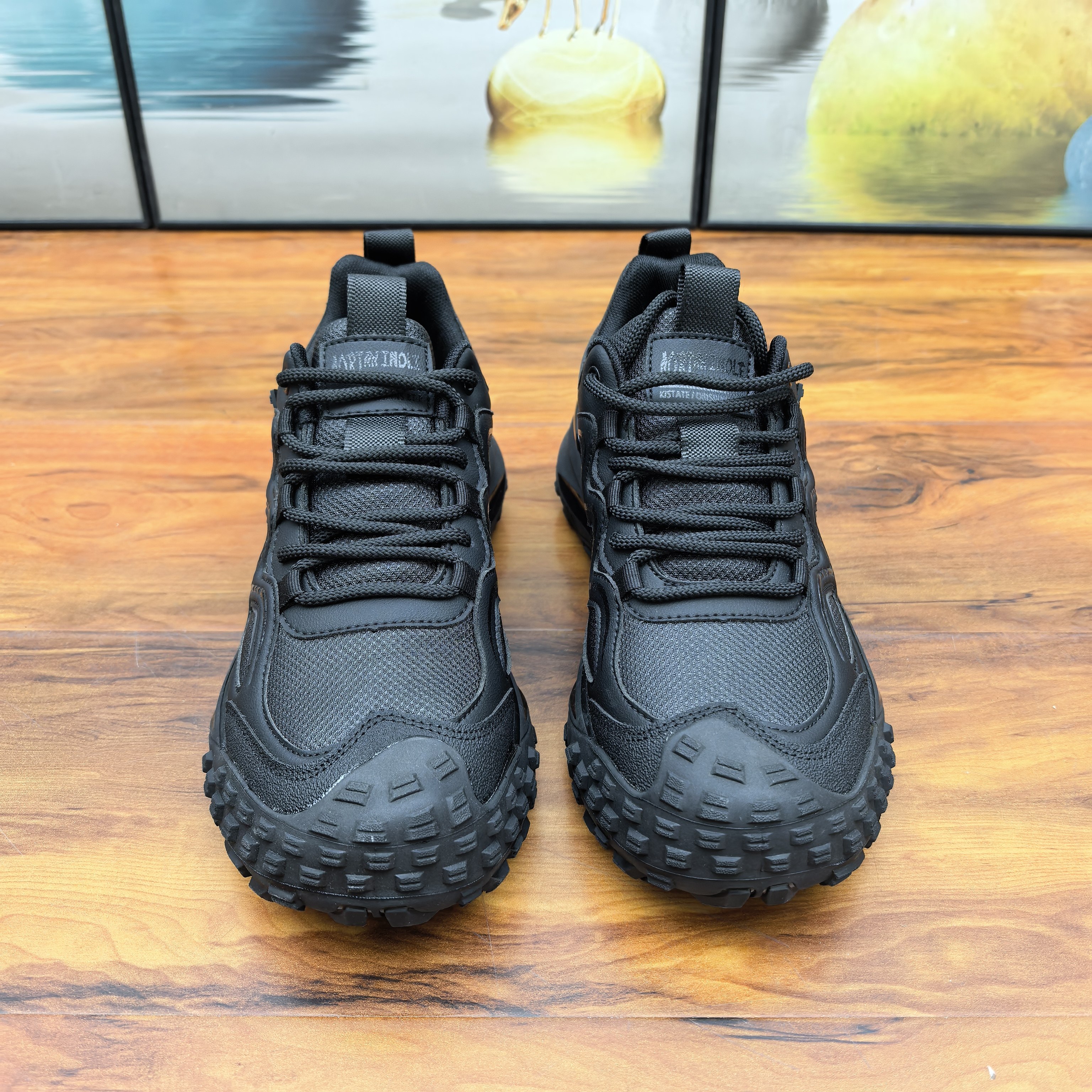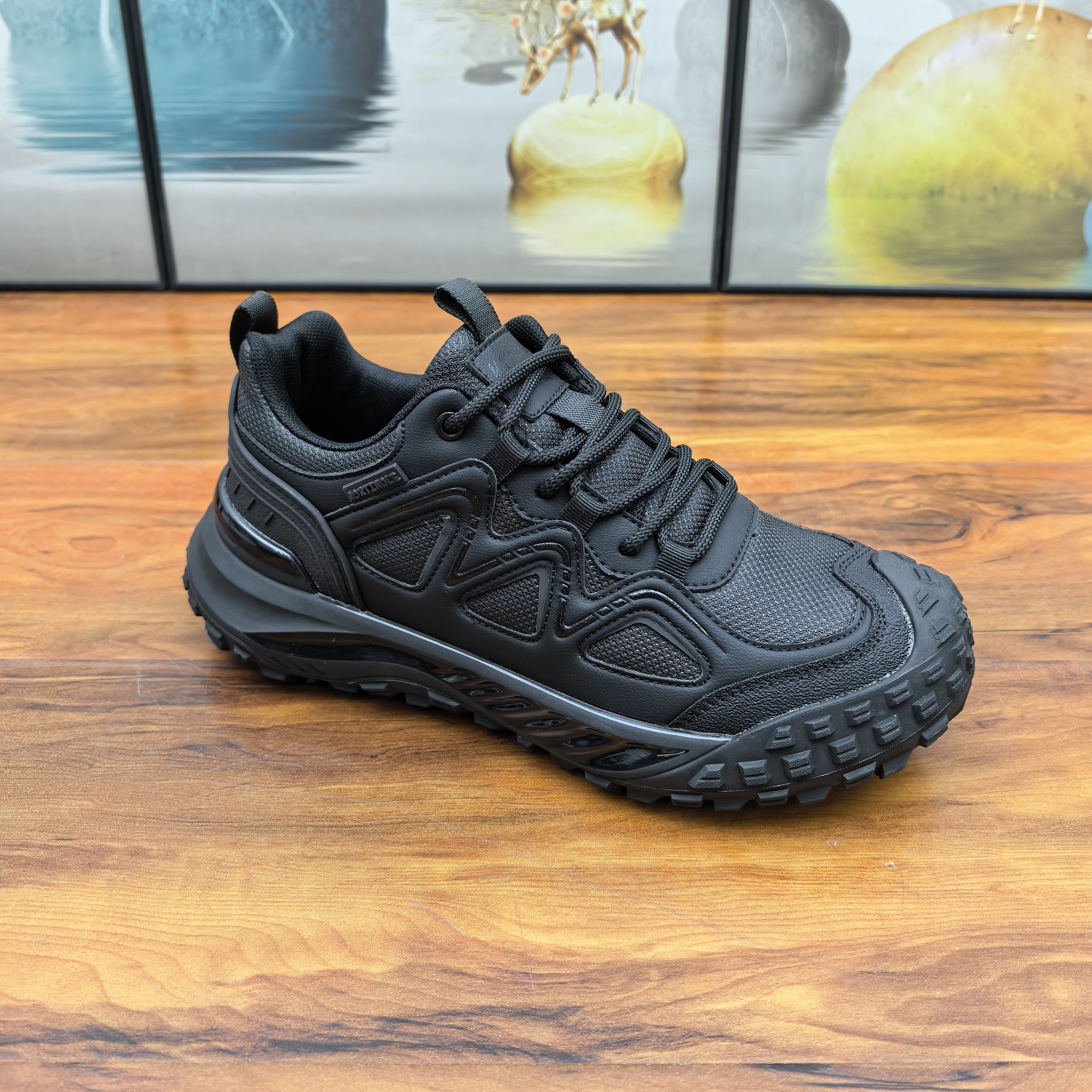 这款黑色男士户外登山鞋集防滑、耐磨、透气与百搭于一体,专为热爱户外与追求舒适的你打造。采用高品质防滑橡胶大底,抓地力强,轻松应对湿滑山石与泥泞路面;鞋面选用耐磨透气材质,有效排汗散热,长时间行走依旧干爽舒适。圆头设计宽敞不挤脚,厚底兼顾缓震与增高效果,提升行走稳定性。经典系带结构贴合脚型,穿脱便捷。简约黑色调搭配利落线条,无论是登山徒步,还是日常通勤、休闲出行,都能轻松驾驭,是男士衣橱中不可或缺的实用单品。