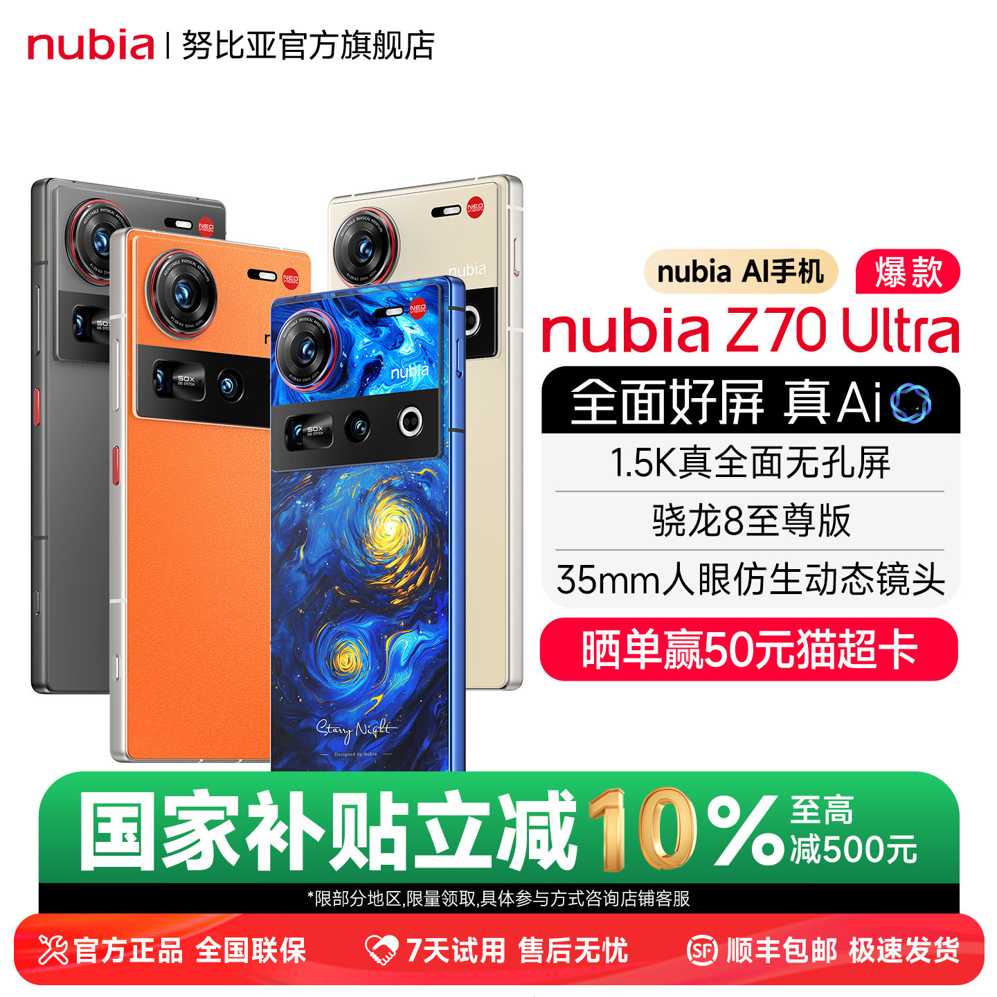 天猫【赠保护壳】努比亚Z70Ultra屏下摄像真全面屏手机骁龙8至尊版防水游戏手机努比亚z70ultra旗舰店豆包手机厂