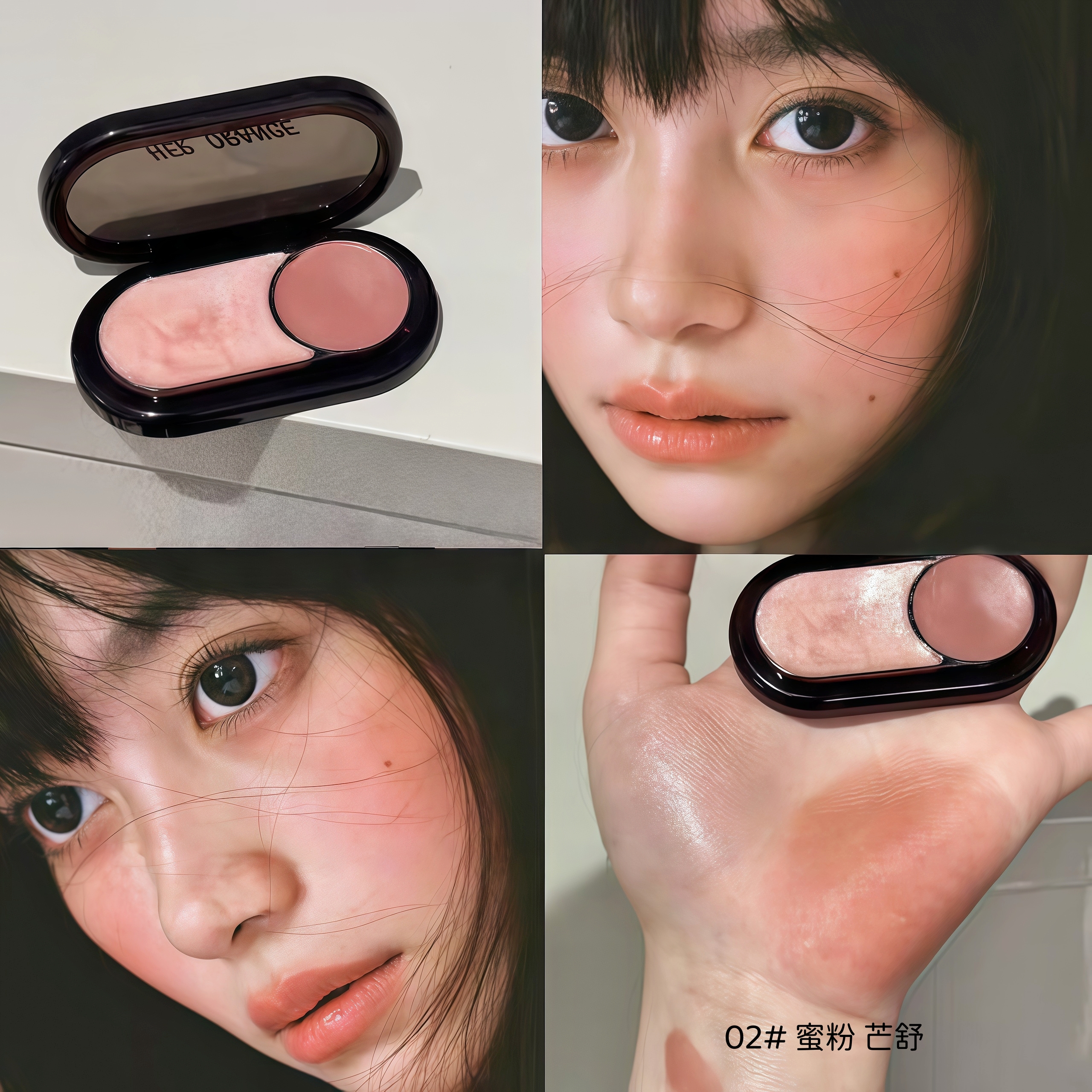 淘宝清冷血色感!双色多用膏水光腮红膏高光一体盘2025新款爆款女细闪