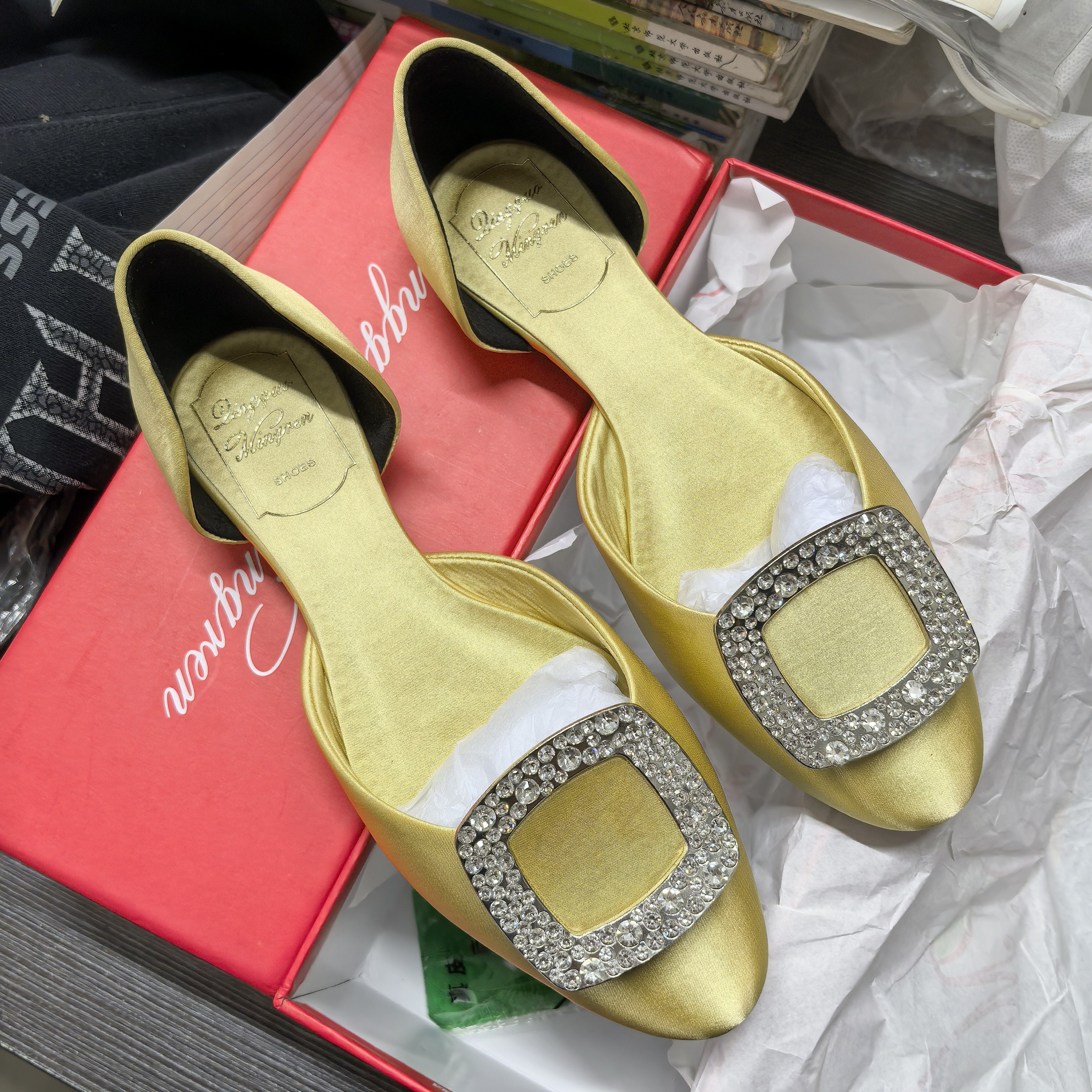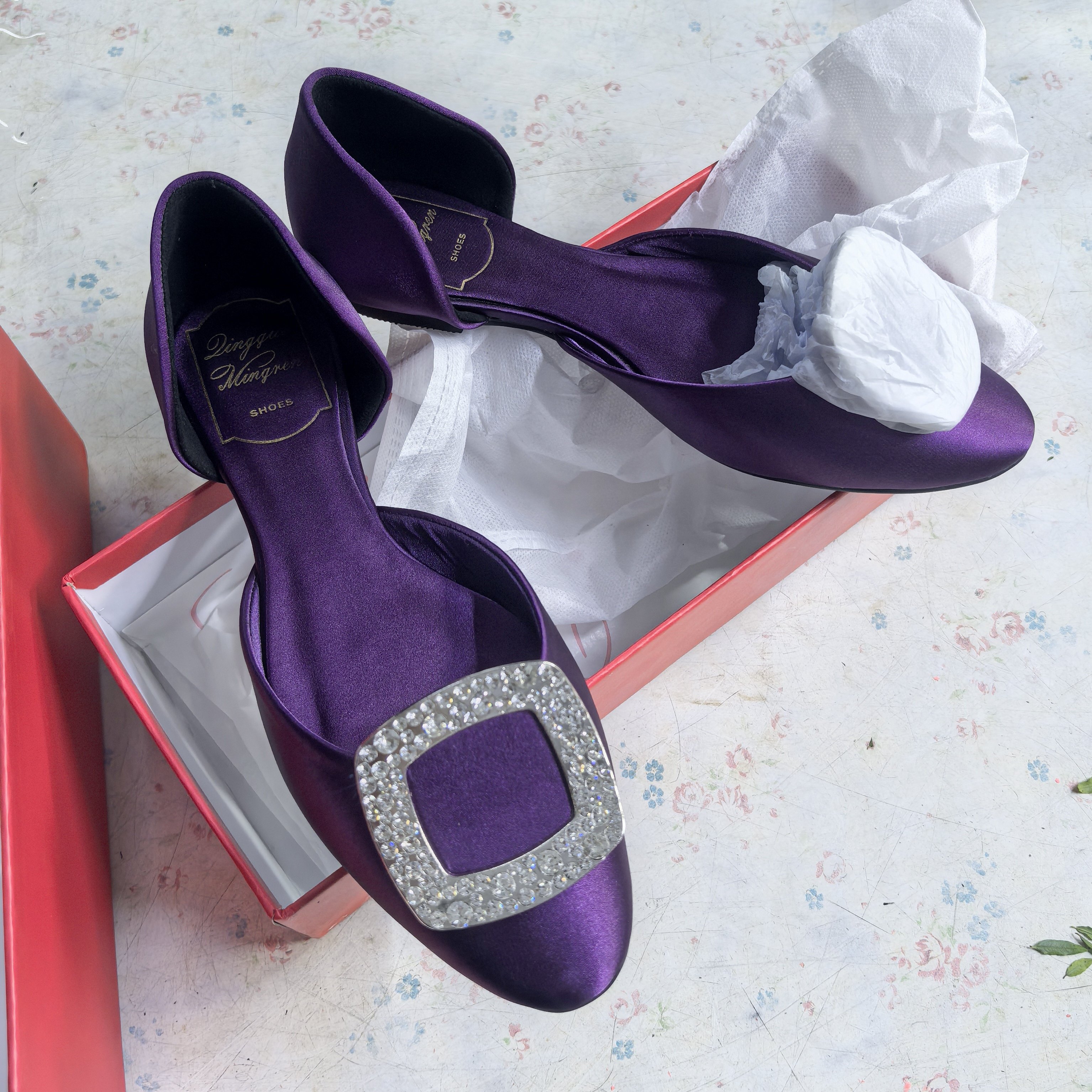 淘宝Ruyan Vuicr 平底鞋rv方扣水钻单鞋浅口真丝绸缎女鞋夏季凉鞋婚鞋