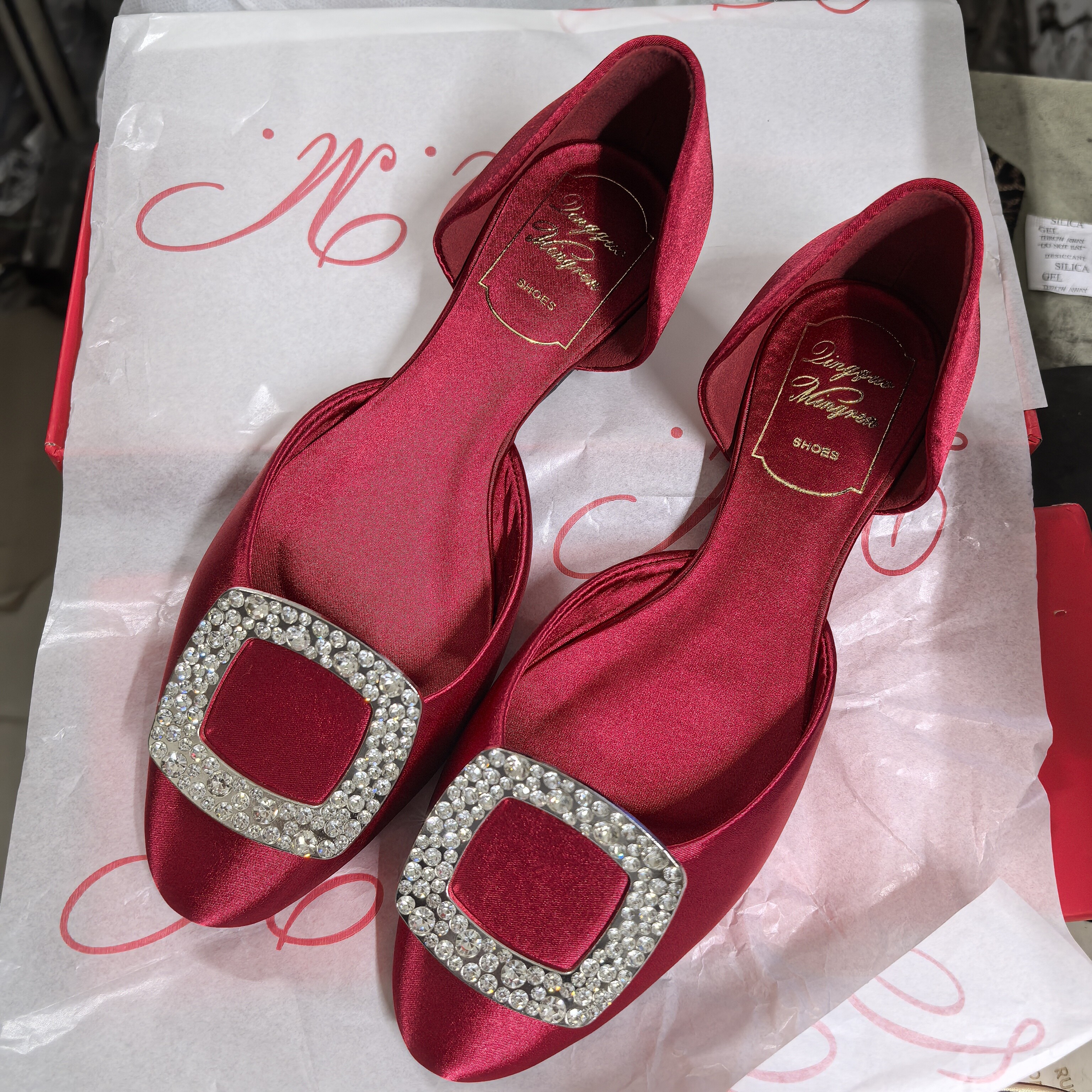 RuyanVuicr平底鞋RV方扣水钻单鞋,是一款融合优雅与舒适的夏季女鞋。采用高品质真丝绸缎面料,触感柔滑,光泽细腻,尽显高级质感。浅口设计搭配精致方扣与水钻装饰,简约中透着轻奢气息,适合多种场合穿搭。平底款式轻盈贴合脚型,长时间行走也不易疲劳,兼顾美观与实用。无论是日常通勤、约会出行,还是作为婚礼婚鞋,都能轻松驾驭,展现女性温婉动人的魅力。多色可选,百搭不挑人,是夏日鞋柜中的必备单品,为整体造型增添一抹亮眼点缀。