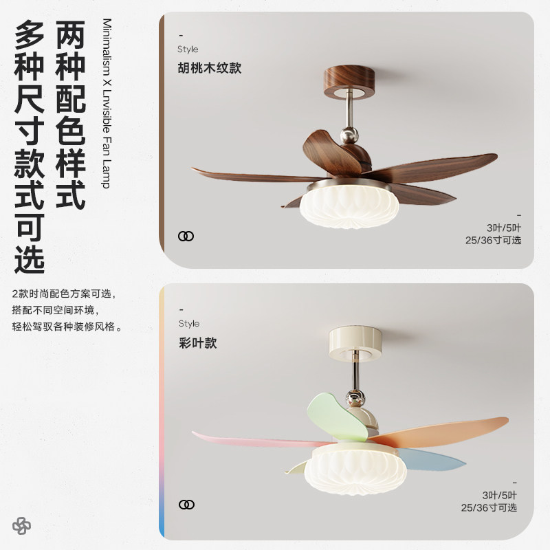 淘隐形风扇灯客厅吊灯北欧轻奢智能控制隐形卧室餐厅一体吊扇灯具