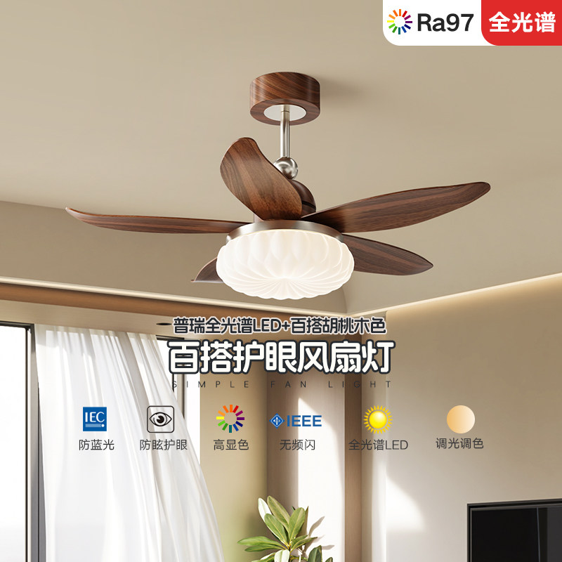 天猫索燕新款风扇灯吊扇灯静音护眼卧室书房儿童房餐厅吊灯简约中古风