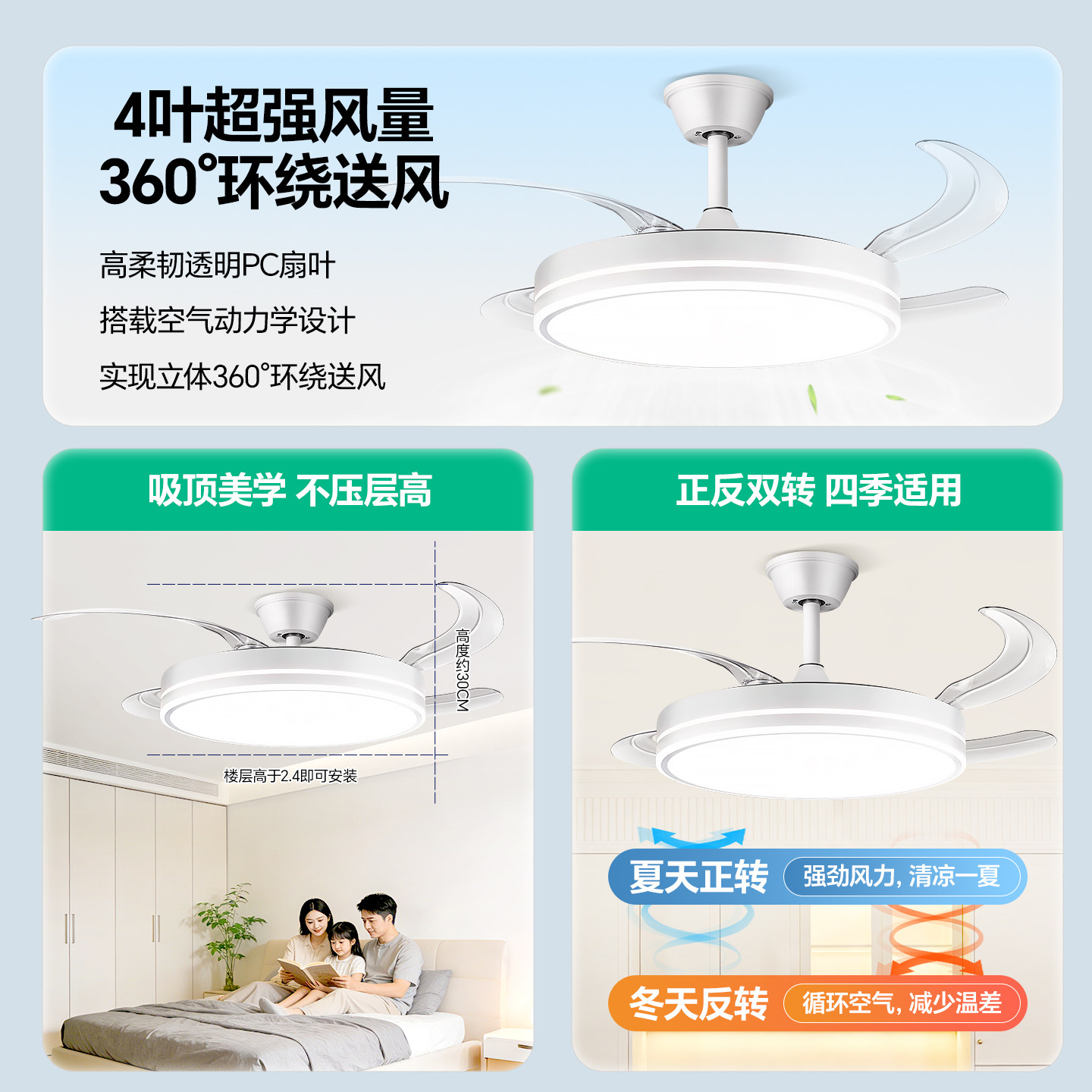 隐形风扇灯风扇灯家用客厅吊灯轻奢吸顶餐厅灯全光谱灯具变频静音